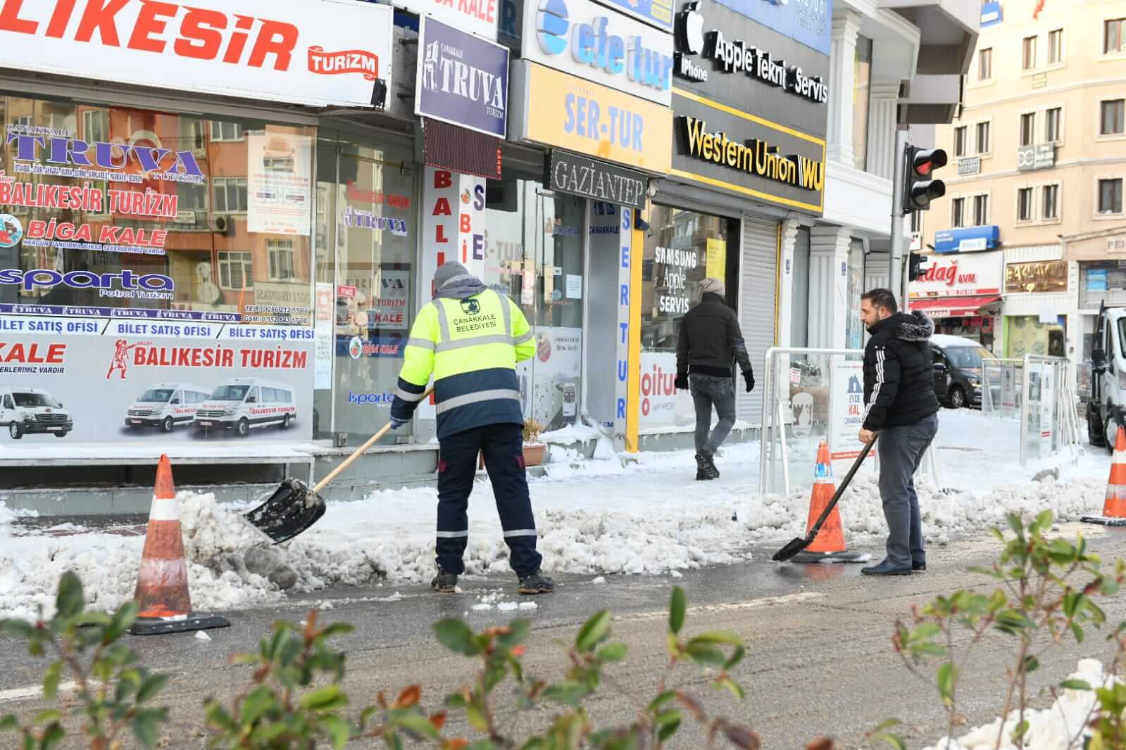 Çanakkale Belediyesi, hafta sonu kentte etkili olan yoğun kar yağışına yönelik gerçekleştirdiği çalışmalara, kar yağışının sona ermesinin ardından da aralıksız olarak devam ediyor.