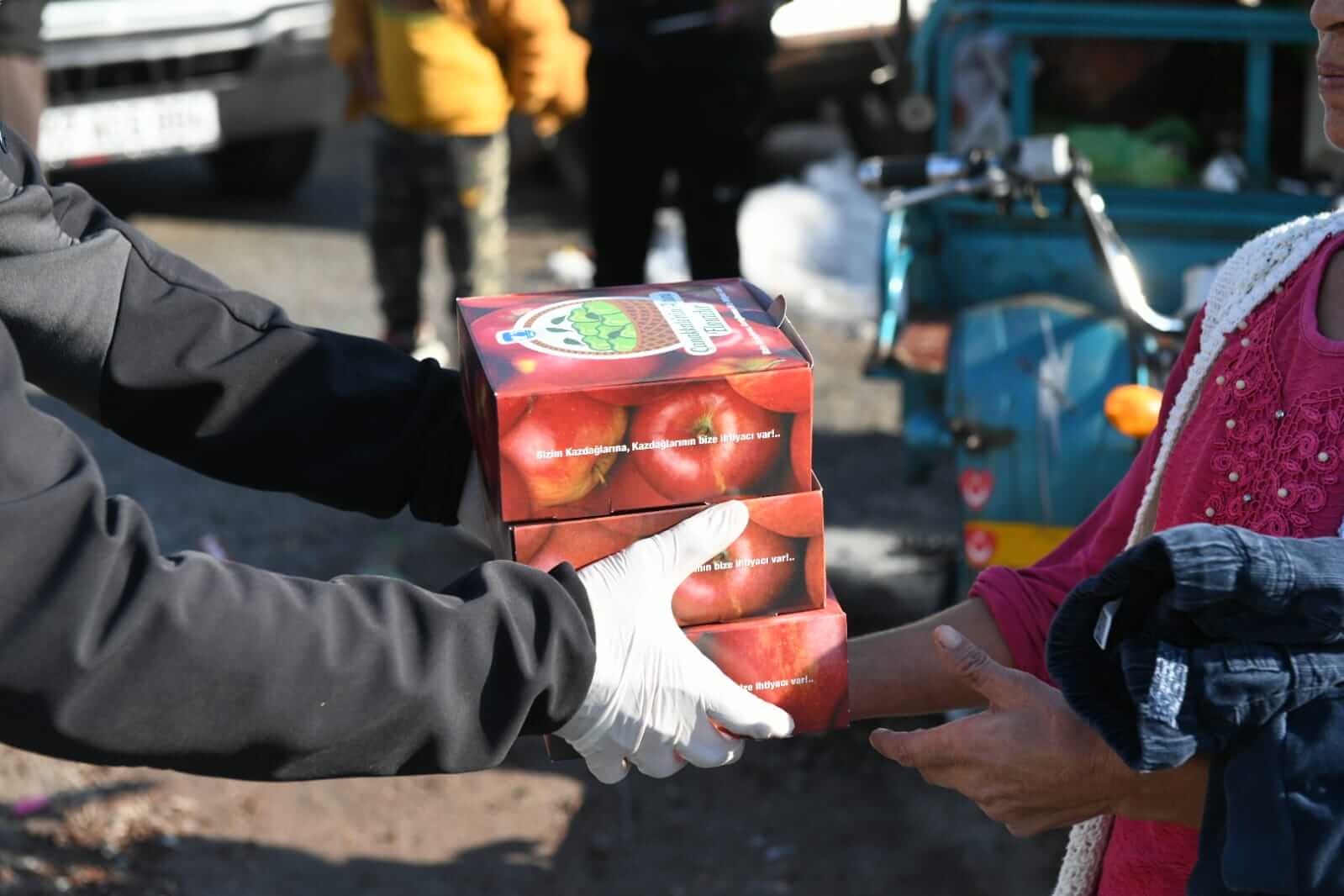 Çanakkale’nin önemli marka ürünleri arasında yer alan elmaların kentliler ile buluşturulmasının yanı sıra kentlileri sağlıklı beslenmeye teşvik etmek amacıyla da gerçekleştirilen çalışma kapsamında, 10 Şubat 2021 Çarşamba günü sıcak yemek desteği alan ihtiyaç sahibi kentlilerimiz ile başlayan elma dağıtımı, Fevzipaşa ve Atatürk Mahallelerinde devam etti.