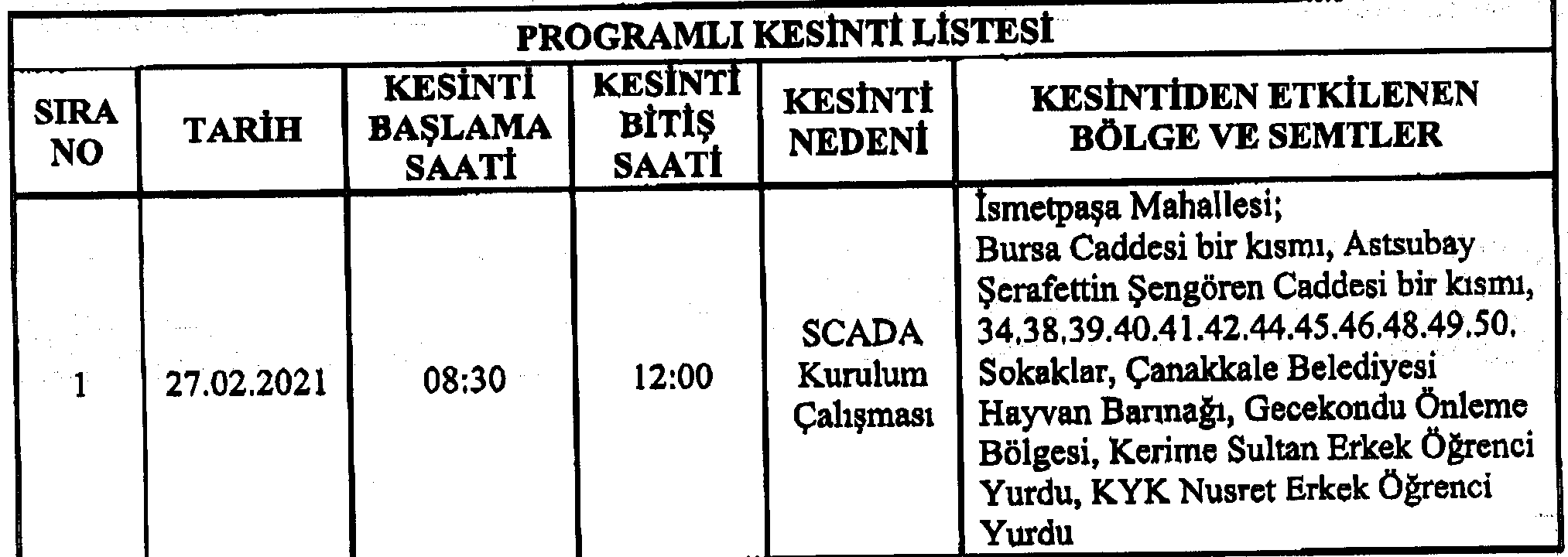 Uludağ Elektrik Dağıtım A.Ş. Çanakkale İşletme Bakım Mühendisliğinden yapılan açıklamaya göre;