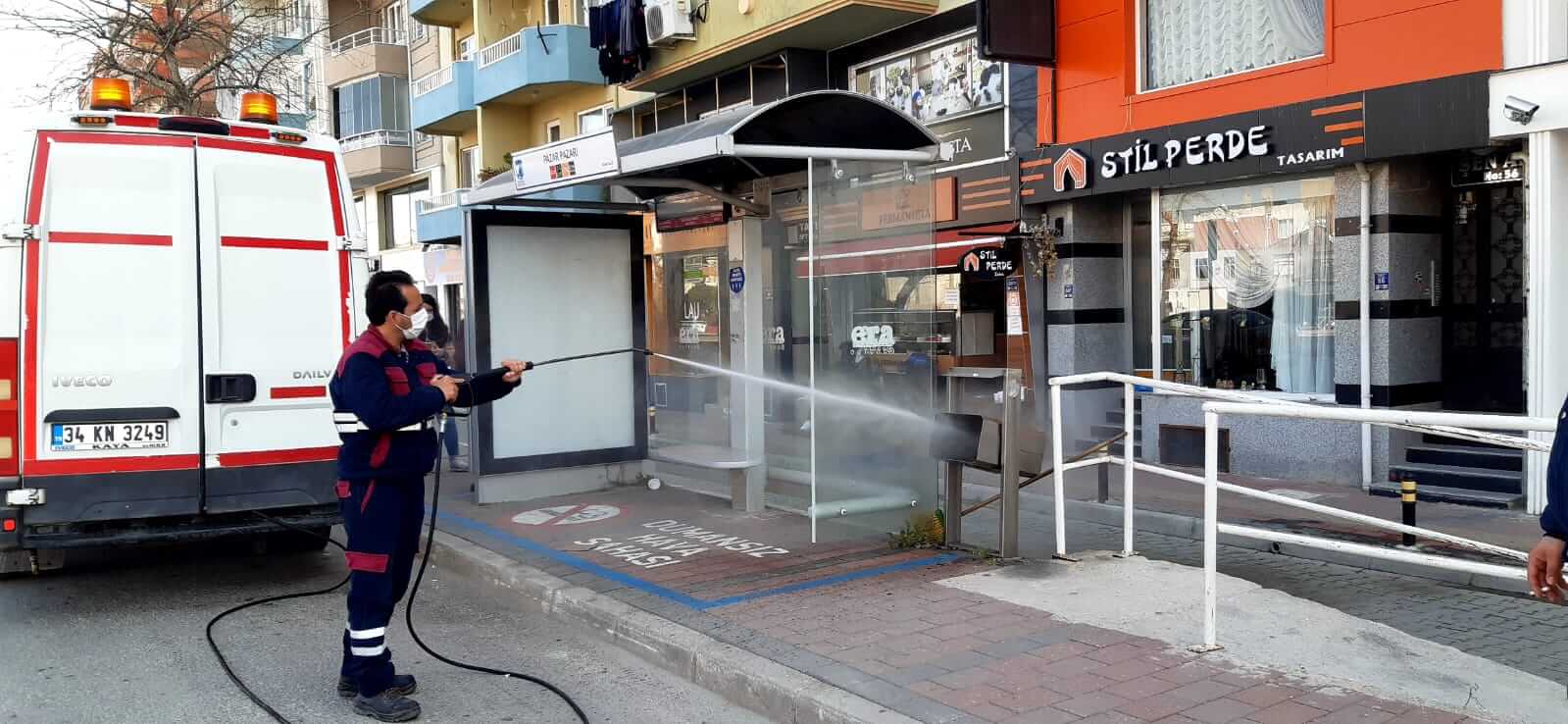 Kent genelinde düzenlenen temizlik çalışmalarının yanı sıra ekipler, salgın hastalık riski nedeni ile kent yaşamının olumsuz etkilenmemesi amacı ile kentlilerin yoğun olarak kullandığı alanlarda da dezenfeksiyon çalışması gerçekleştirdi.