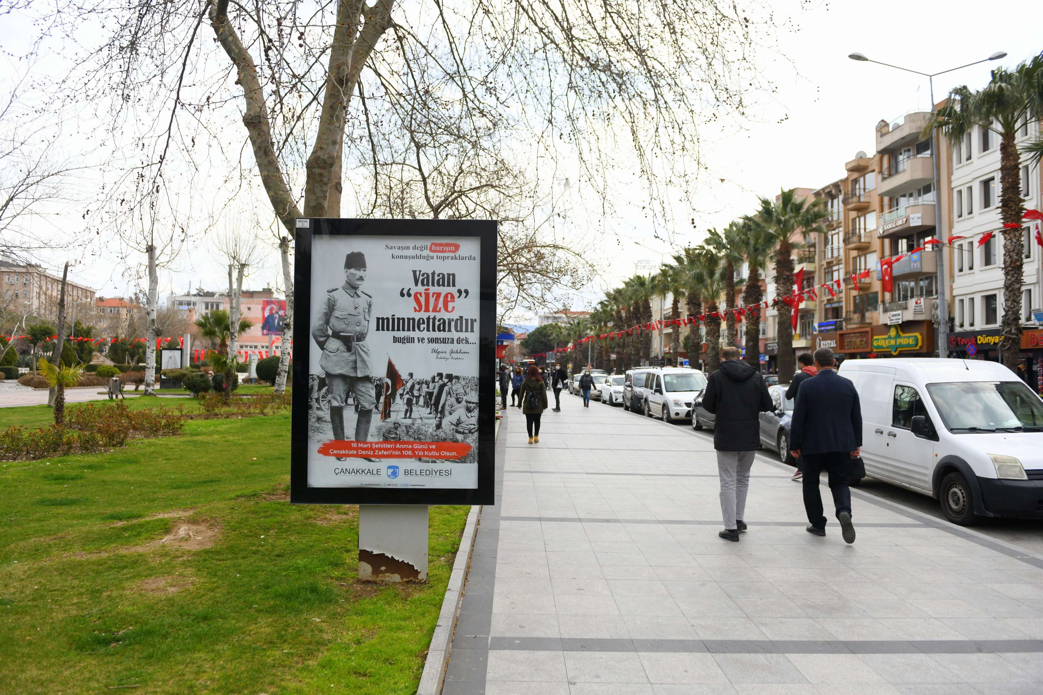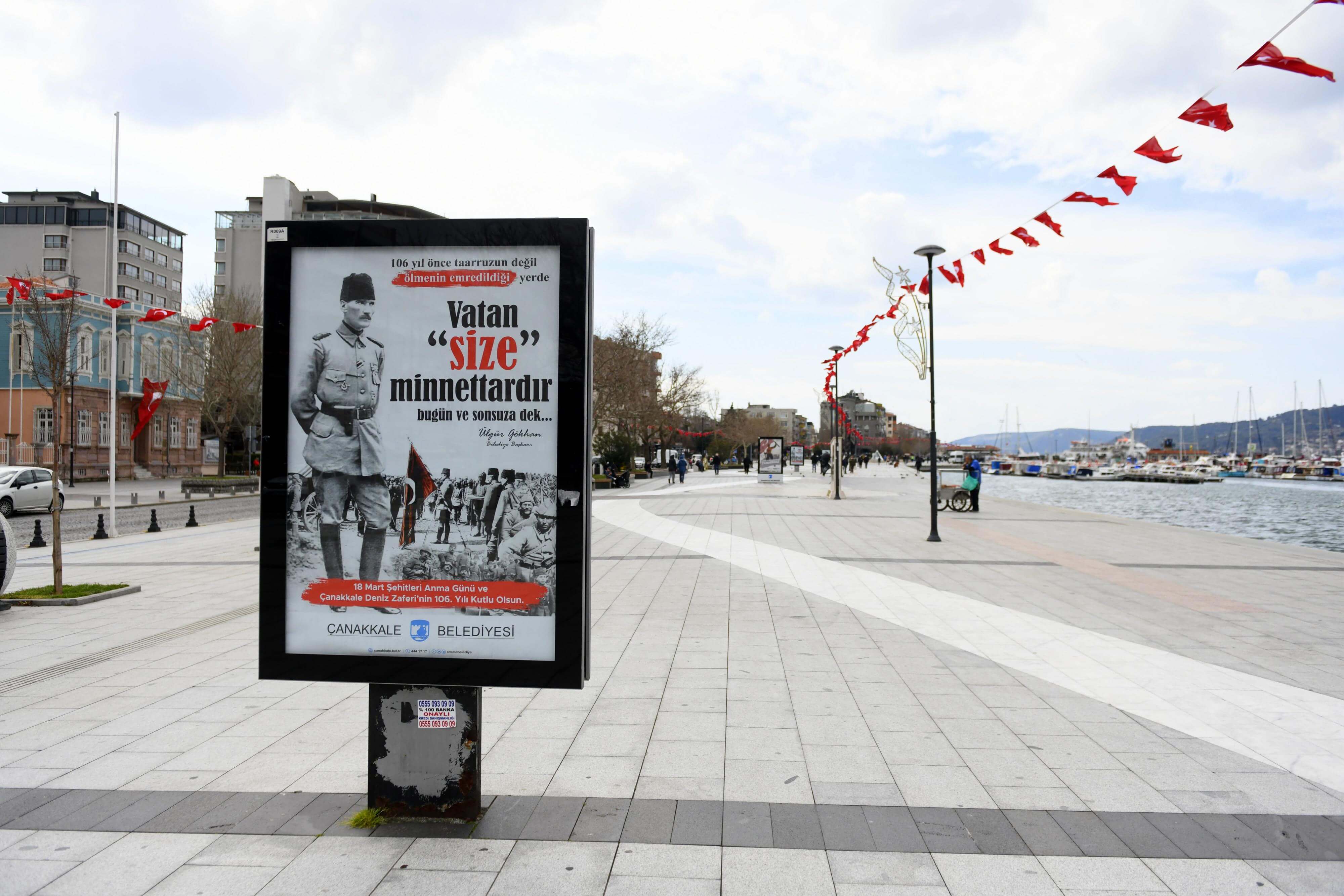 Çanakkale Belediyesi tarafından, 18 Mart Şehitleri Anma Günü ve Çanakkale Deniz Zaferi'nin 106. yıl dönümü etkinleri kapsamında kent, Atatürk Posterleri ve Türk Bayrakları ile donatıldı.
