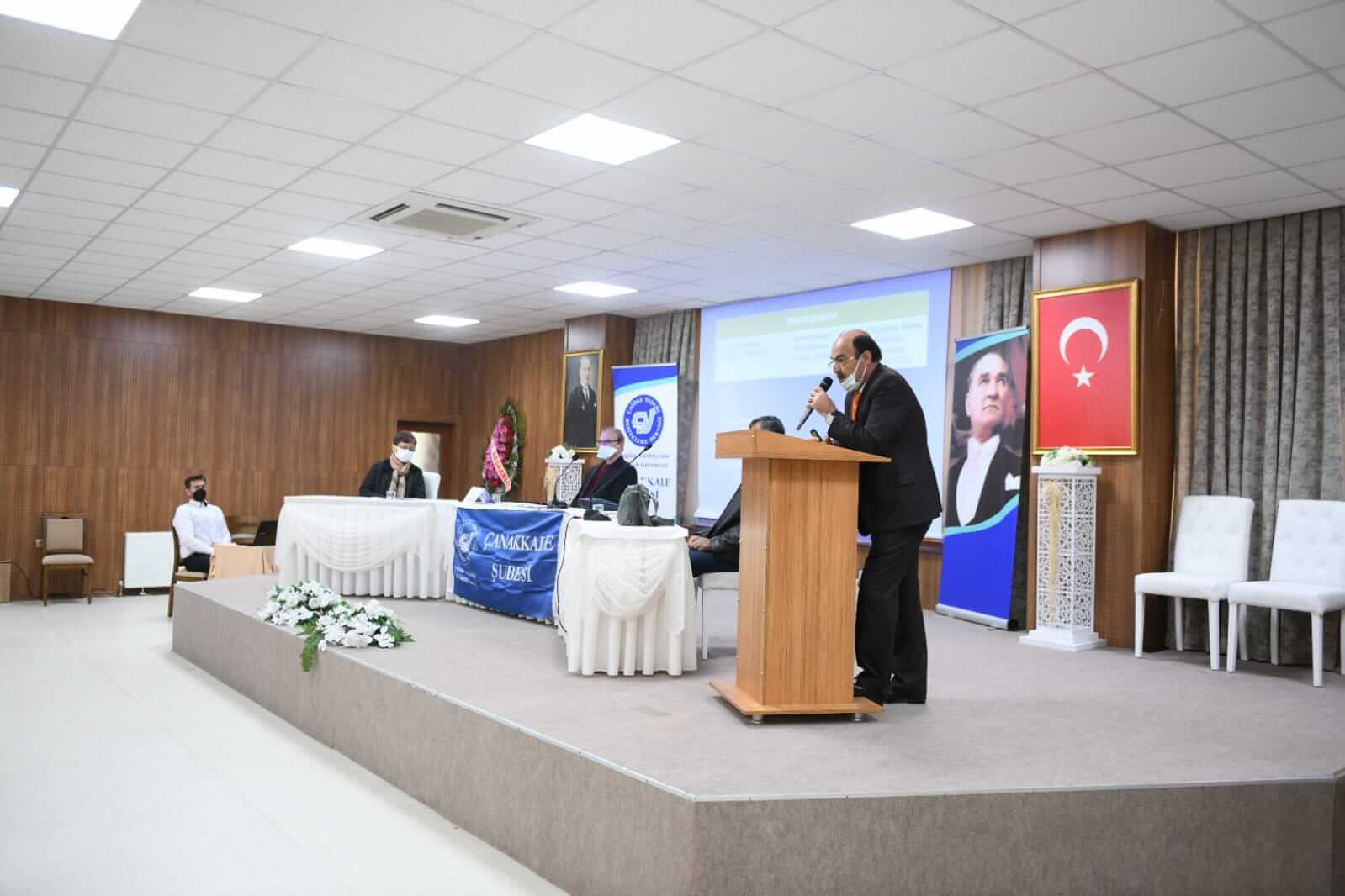 Çanakkale Belediyesi Çalışanları Sosyal Tesisleri’nde gerçekleştirilen ÇYDD genel kuruluna Belediye Başkan Vekili Ünüvar’ın yanı sıra Belediye Meclis Üyeleri, dernek üyeleri ve davetliler katıldı. Saygı duruşu ve İstiklal Marşı’nın okunması ile başlayan genel kurul açılış konuşmaları ile devam ederken, Başkan Vekili Ünüvar da başarılı bir genel kurul olması temennisinde bulundu.