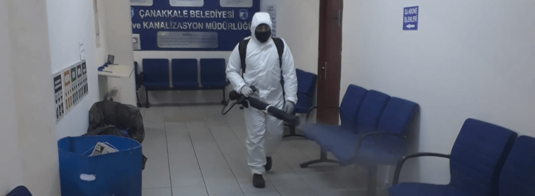 Salgın hastalık riski nedeni ile kent genelinde aralıksız sürdürülen dezenfeksiyon çalışmaları kapsamında ekipler, Çanakkale Belediyesi hizmet binalarını dezenfekte etti.