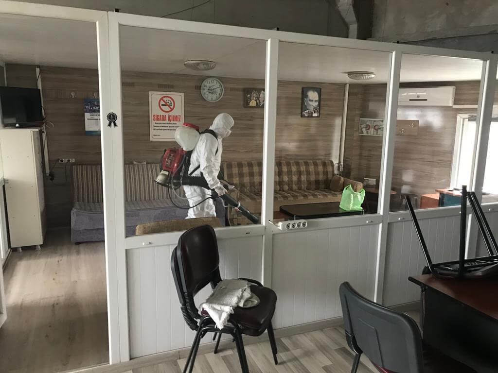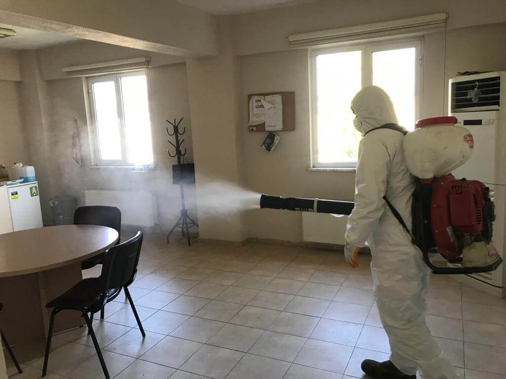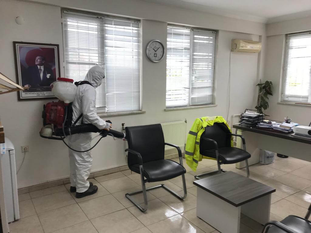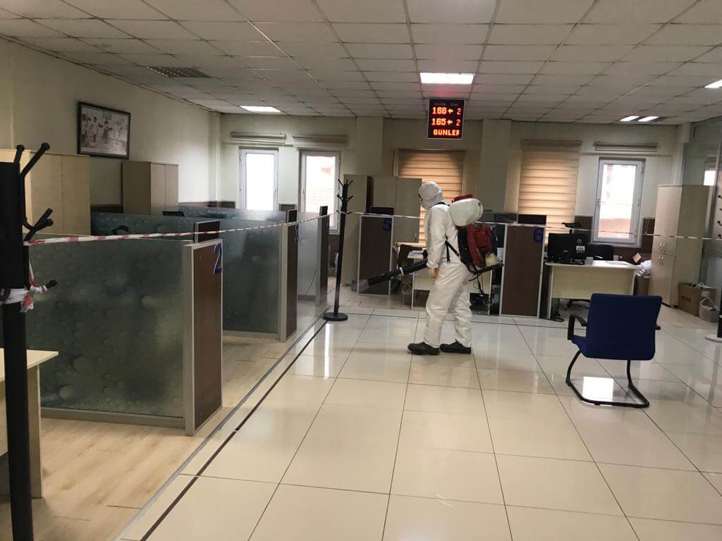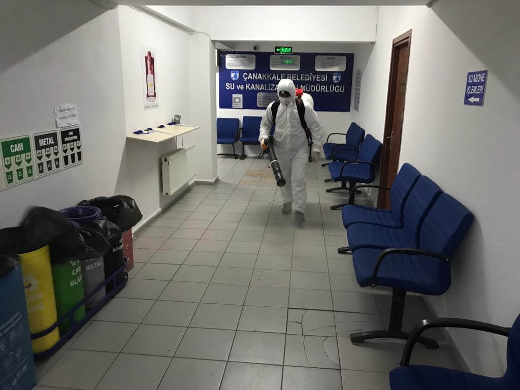 Koronavirüs salgınına karşı alınan önlemler doğrultusunda, kentliler tarafından yoğun olarak kullanılan alanlarda düzenlenen dezenfeksiyon çalışmaları hız kesmiyor. Çanakkale Belediyesi Temizlik İşleri Müdürlüğü ekipleri tarafından gerçekleştirilen çalışmalar kapsamında, kentlilerin ve belediye personelinin salgın hastalık riskinden etkilenmemesi amacı ile belediyeye bağlı birimlerde rutin olarak kapsamlı dezenfeksiyon çalışması gerçekleştiriliyor.