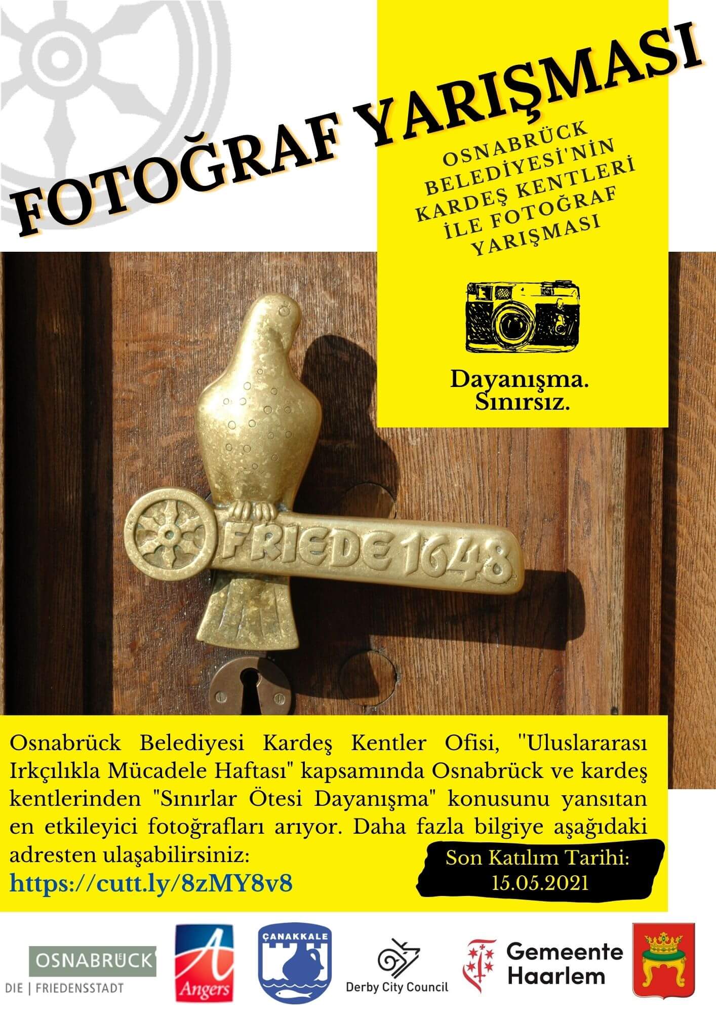 Çanakkale Belediyesi’nin Almanya’da bulunan Kardeş Kenti Osnabrück Belediyesi Osnabrück Kardeş Kentler Ofisi, ‘2021 Uluslararası Irkçılıkla Mücadele Haftası‘ kapsamında kardeş kentleri olan Angers, Çanakkale, Derby, Haarlem ve Twer ile Osnabrück halkını, uluslararası bir fotoğraf yarışmasına davet ediyor.