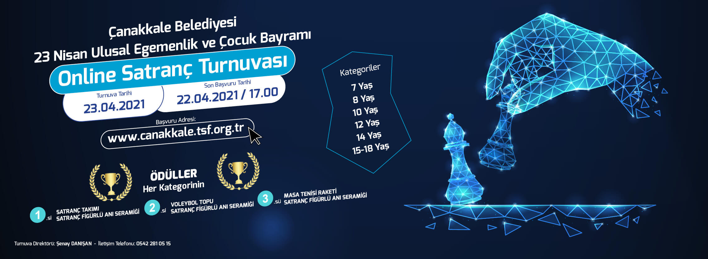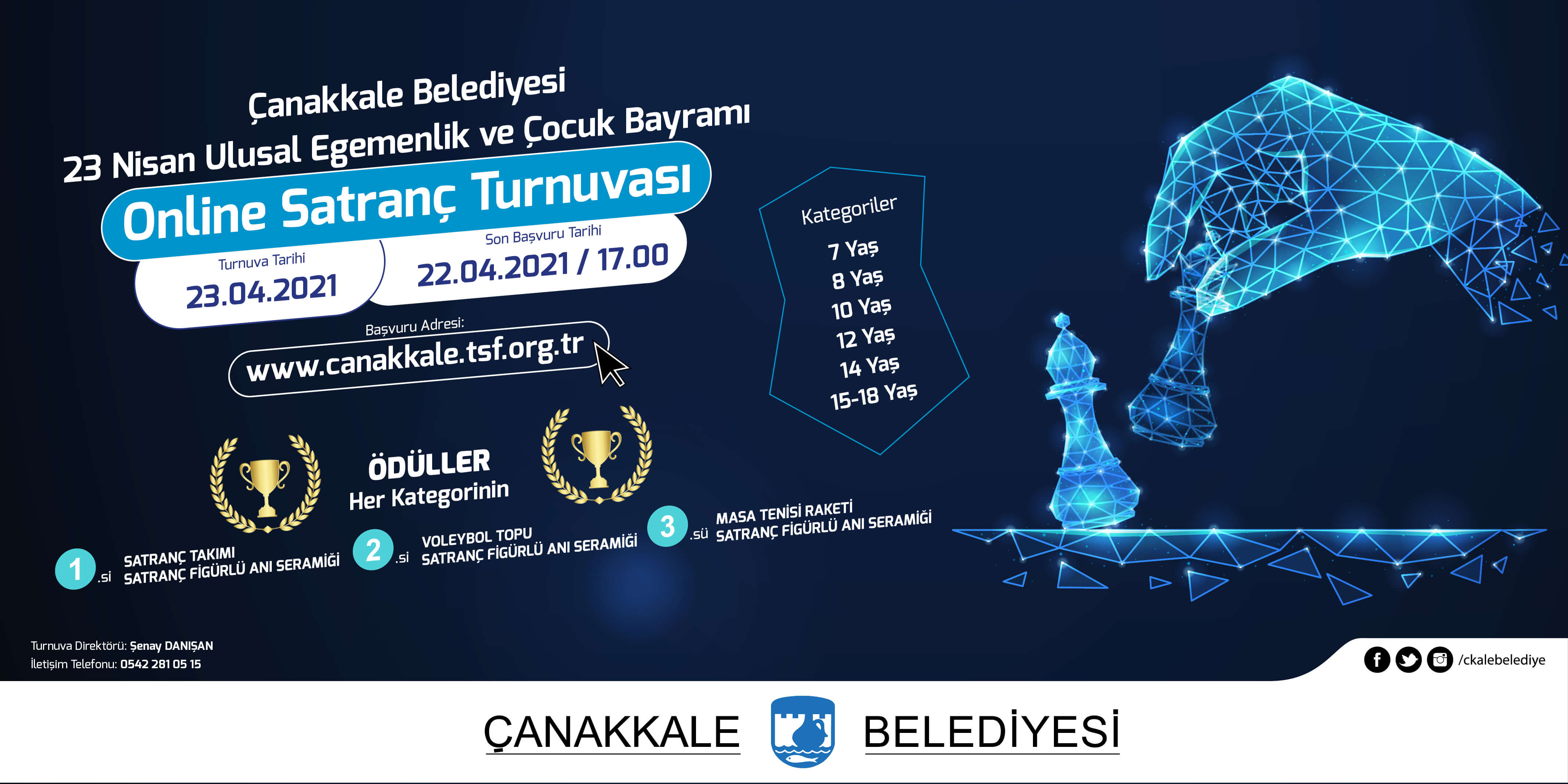 Çanakkale Belediyesi tarafından 23 Nisan Ulusal Egemenlik ve Çocuk Bayramı etkinlikleri kapsamında online satranç turnuvası düzenlenecek.