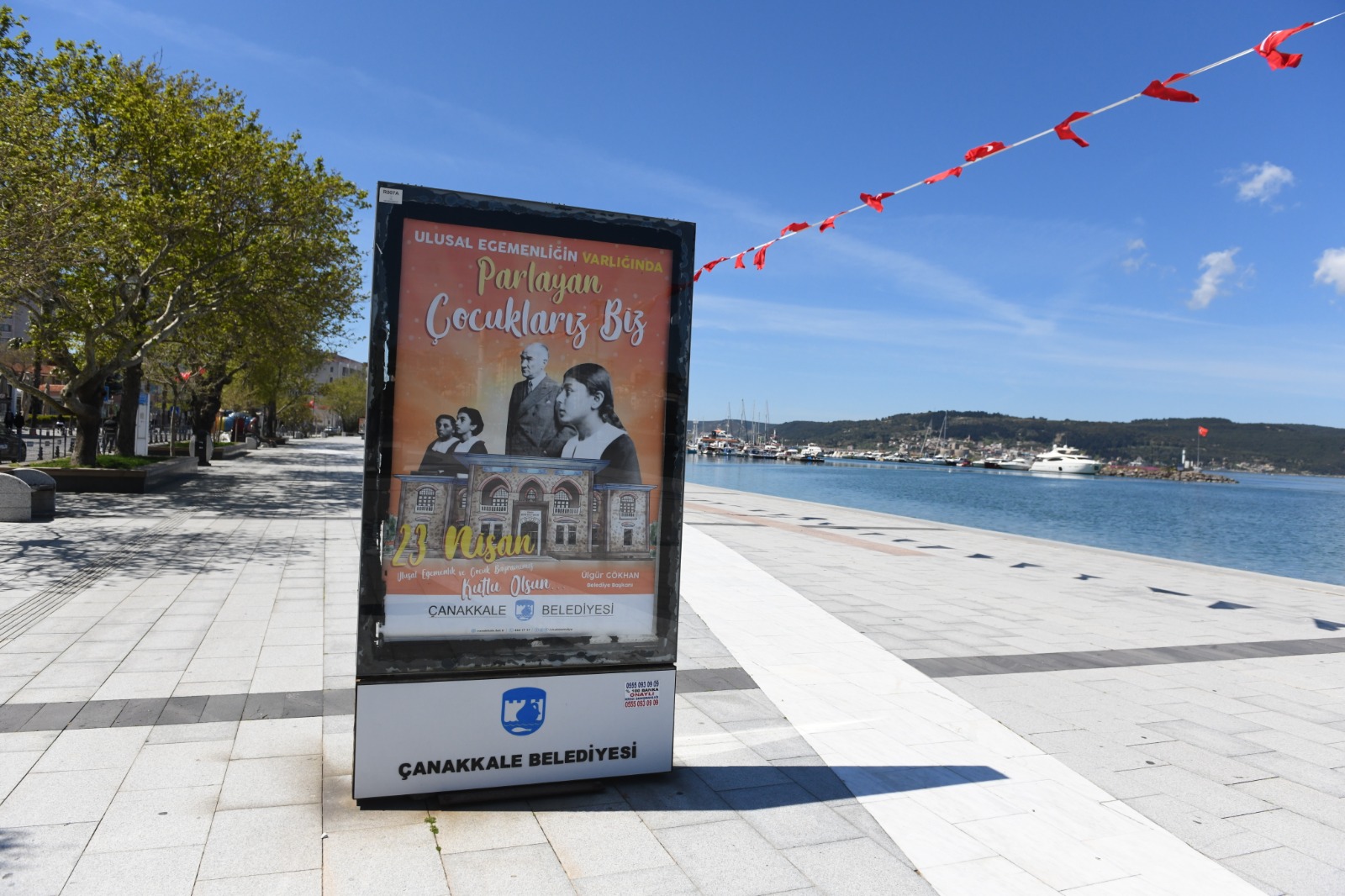 Çanakkale Belediyesi, her yıl olduğu gibi bu yıl da 23 Nisan Ulusal Egemenlik ve Çocuk Bayramı öncesinde kenti Türk Bayrakları ve Atatürk posterleri ile donattı.