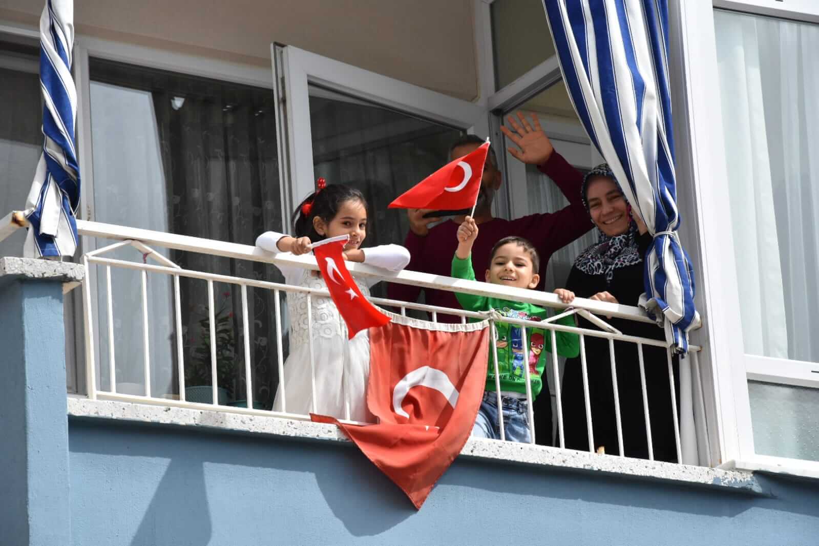 Kentlilerin ve çocukların bayram coşkusunu evlerinde de yaşayabilmeleri amacı ile kentin cadde ve sokaklarında 23 Nisan şarkıları yayını gerçekleştirildi. Cadde ve sokaklarda yankılanan şarkılara, çocuklar başta olmak üzere kentliler de pencere ve balkonlarından Türk Bayrakları ve Atatürk posterleri ile eşlik etti.