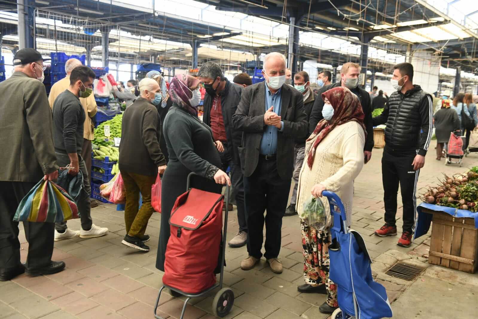 Covid-19 salgını nedeni ile tüm yurtta 29 Nisan 2021 Perşembe günü saat 19:00’da başlayacak olan sokağa çıkma kısıtlaması nedeni ile Perşembe günü kurulan pazar alanını ziyaret eden Başkan Gökhan, uygulanan tedbirlere ilişkin denetimlerde bulundu. Belediye Başkan Yardımcısı İrfan Mutluay ve zabıta ekipleri eşliğinde Pazar alanını gezen Başkan Gökhan, esnaf ve vatandaşlar ile sohbet ederken, maske, mesafe ve hijyen kurallarına uymaları konusunda uyarılarda bulundu.