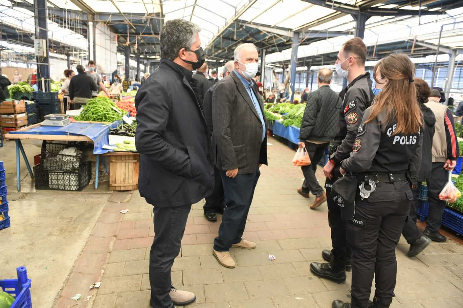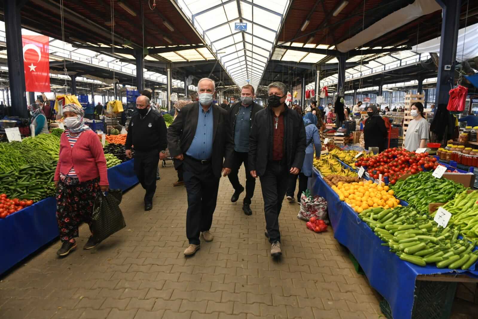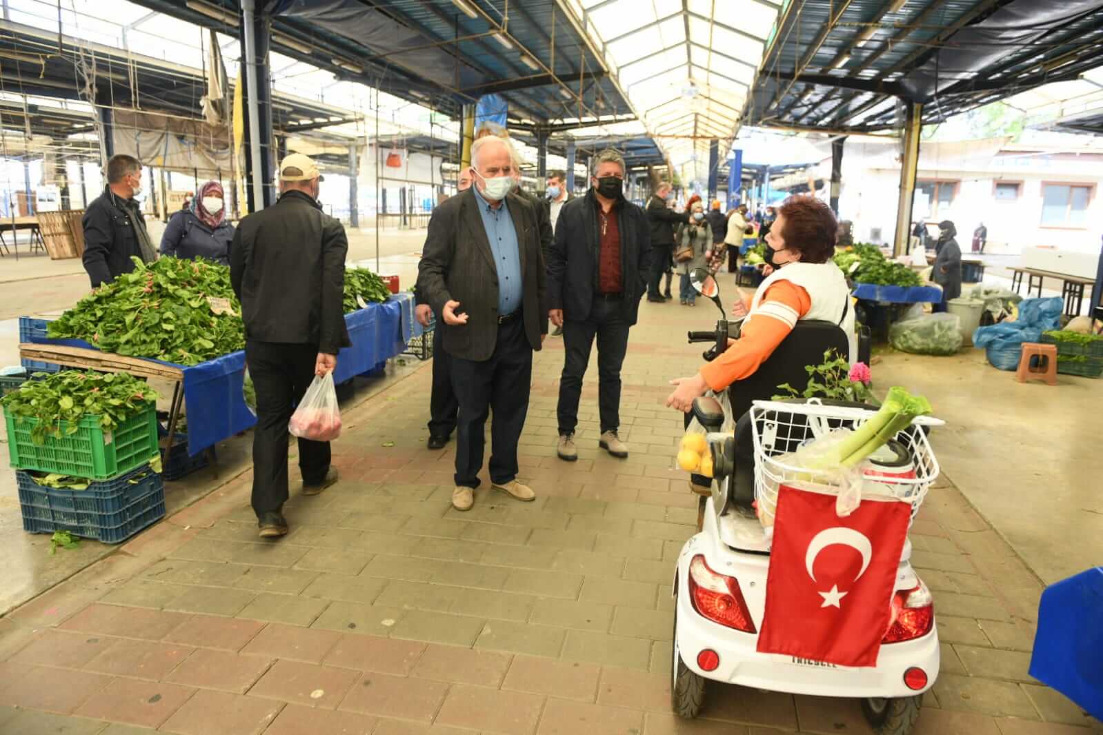 Belediye Başkanı Ülgür Gökhan, salgınla mücadele kapsamında alınan kararlar doğrultusunda pazar yerinde uygulanan tedbirleri denetledi.