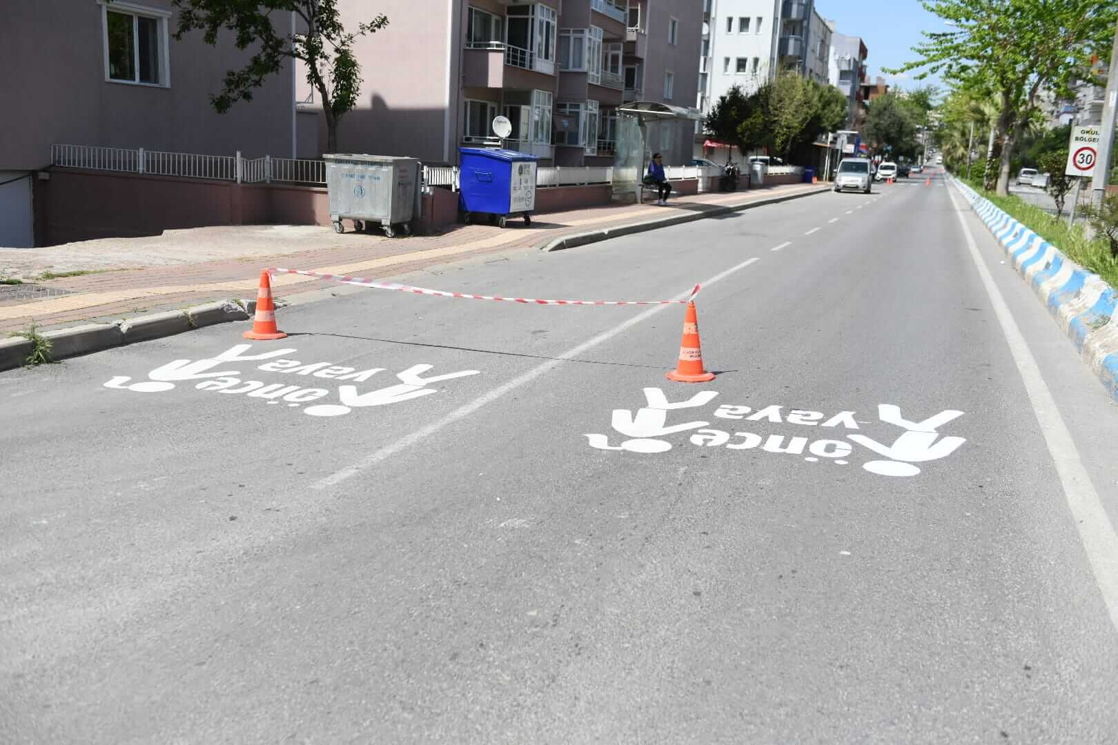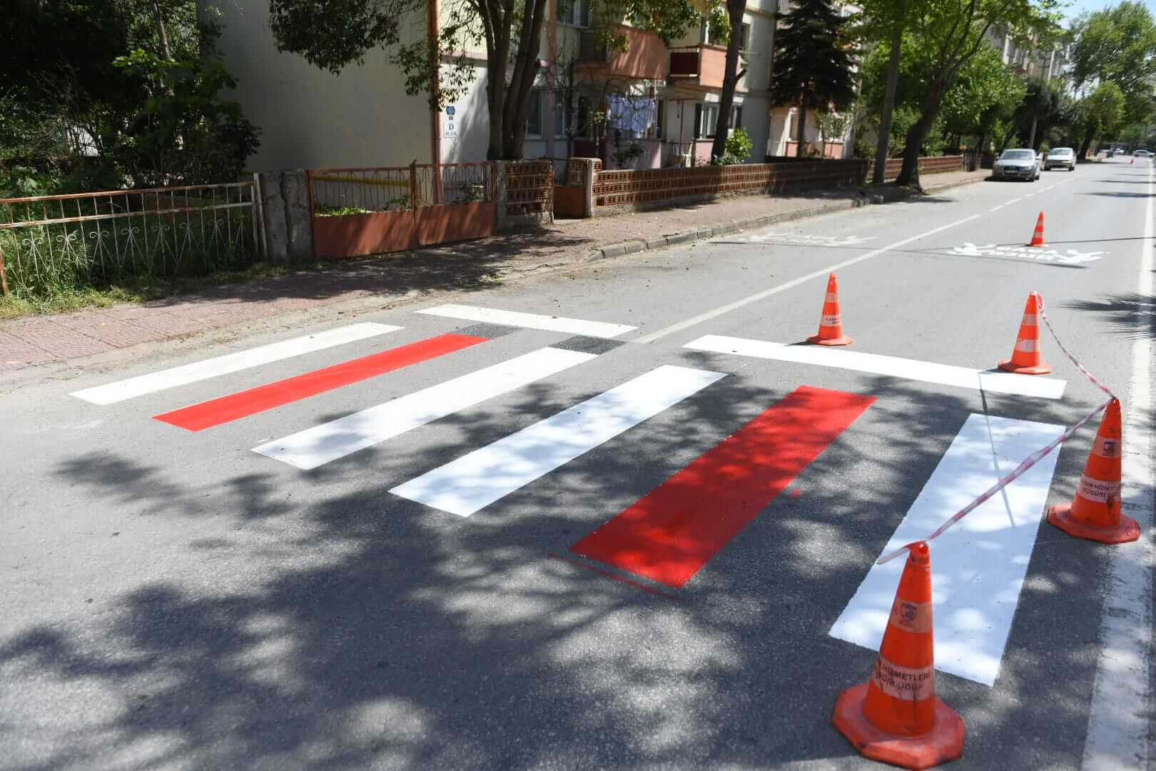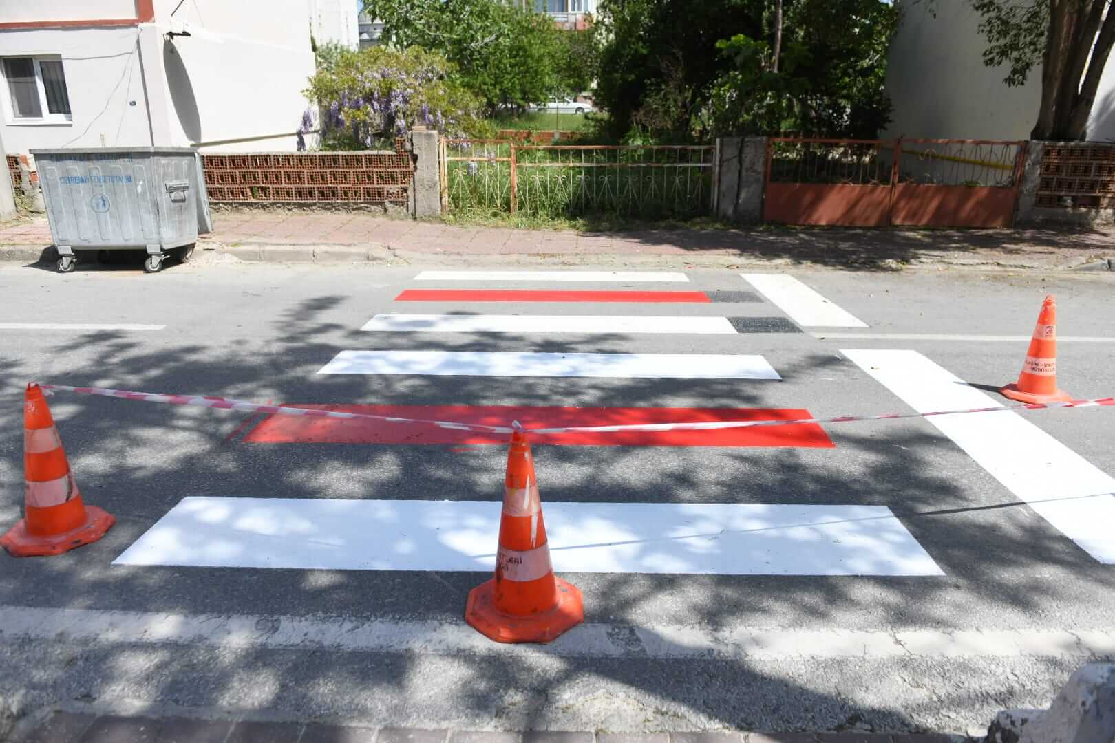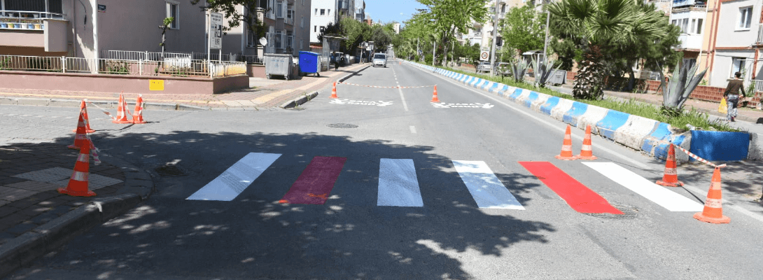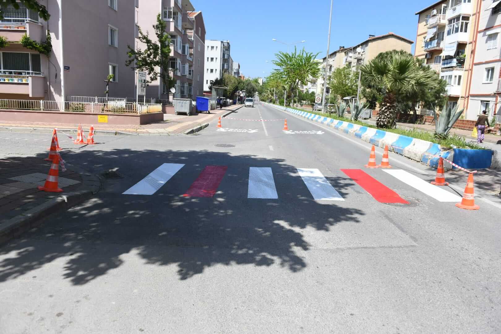 Ulaşım Hizmetleri Müdürlüğü ekiplerince gerçekleştirilen çalışma kapsamında Tuğsavul Caddesi’nde, silinen ve eskiyen yaya çizgileri boyanarak yenilendi.