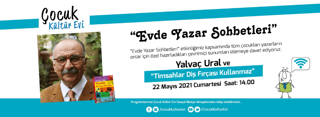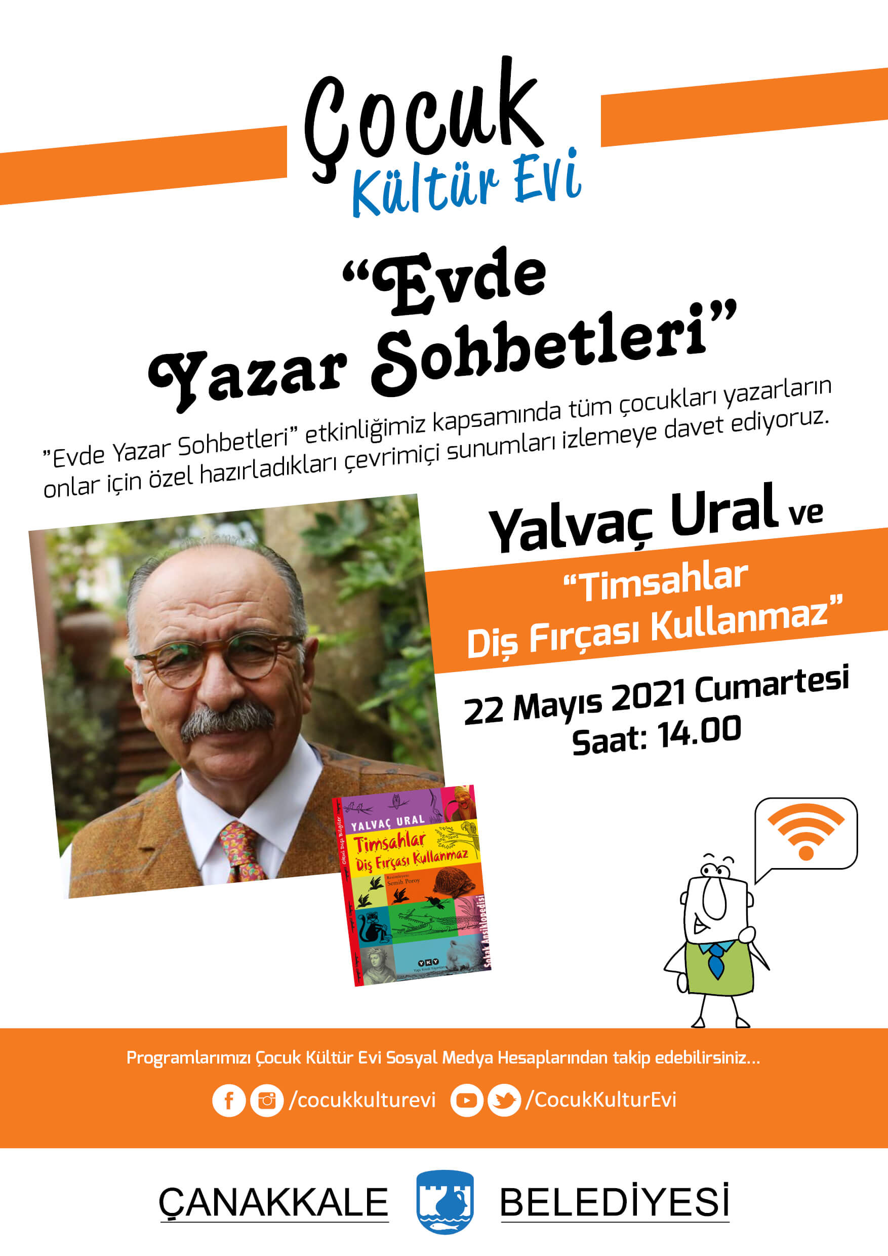 Çocuk Kültür Evi'nin, 17 Ekim 2020 tarihinde başlayan ve çocukları Mine Soysal, Gökçe Ateş Aytuğ, Fatih Erdoğan, Aslı Der, İrem Uşar, Brigitte Labbe, Şerife Öztürk, Serap Biçici gibi birbirinden değerli yazarlarla bir araya getiren “Evde Yazar Buluşmaları” etkinliğinin mayıs ayı konuğu, çocuk edebiyatının usta kalemi Yalvaç Ural olacak.