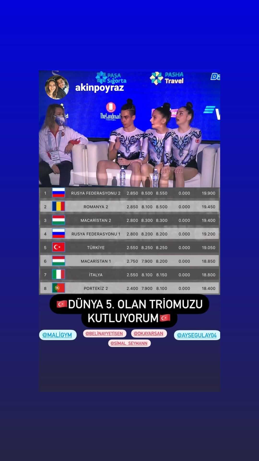 Azerbaycan'ın Bakü kentinde 18-24 Mayıs 2021 tarihlerinde düzenlenen Aerobik Jimnastik Yaş Grupları Dünya Şampiyonası'nda Çanakkale Belediyespor Antrenörü Ayşegül Ay'ın teknik ekipte yer aldığı Türkiye Jimnastik Takımı, şampiyondan çeşitli kategorilerden 5.'lik, 6'.lık ve 7.'lik elde ederek ayrıldı. Şampiyonada mücadele eden sporcular, çiftler kategorisinde dünya 5.'liği ve 6.'lığı elde ederken, trio kategorisinde dünya 5.'liği, tek kadın kategorisinde ise dünya 6.'lığı elde etti.
