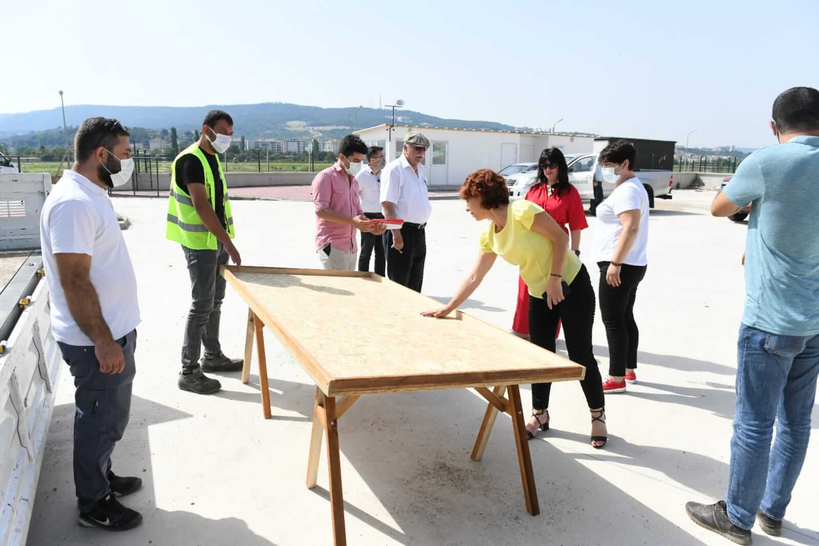 Teknik inceleme gezisine devam eden Başkan Gökhan'ın bir sonraki durağı ise Barbaros Atam Kreş ve Gündüz Bakım Evi arkasında yapımı tamamlanan üretici pazarı oldu. Kısa süre içerisinde faaliyete geçmesi planlanan pazar alanında incelemelerde bulunan Başkan Gökhan, yapılacak düzenlemelere ilişkin teknik ekipten bilgi aldı.