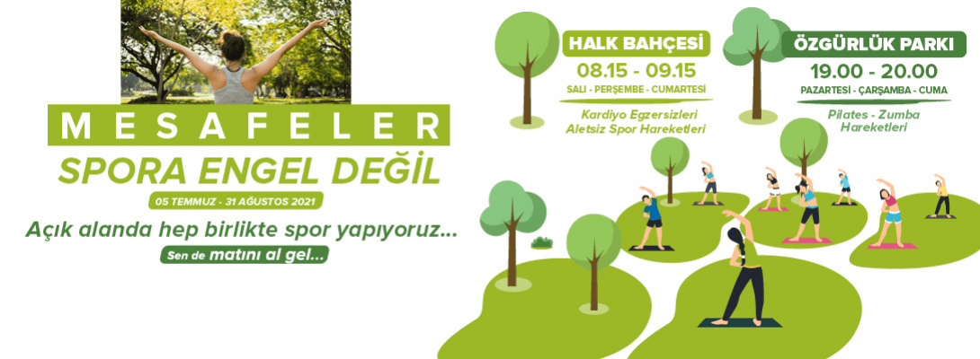 Kentlilerin açık havada, uzman eğitmenler eşliğinde spor yapabilecekleri etkinlikler 5 Temmuz 2021 Pazartesi günü başlıyor. 31 Ağustos 2021 tarihine kadar devam edecek olan spor etkinlikleri haftanın 6 günü, Halk Bahçesi ve Özgürlük Parkı’nda düzenlenecek.