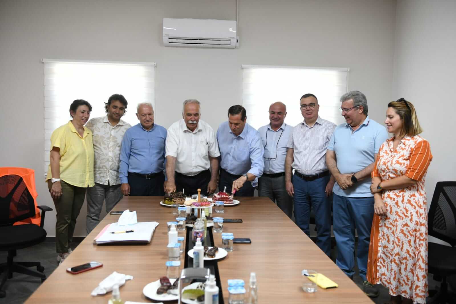 Tesis Gezisinin ardından Başkan Gökhan ve ÇAKAB Üyesi Belediye Başkanları, firma yetkilileri ile birlikte SUEZ'in 2. yılı pastasını kesti.