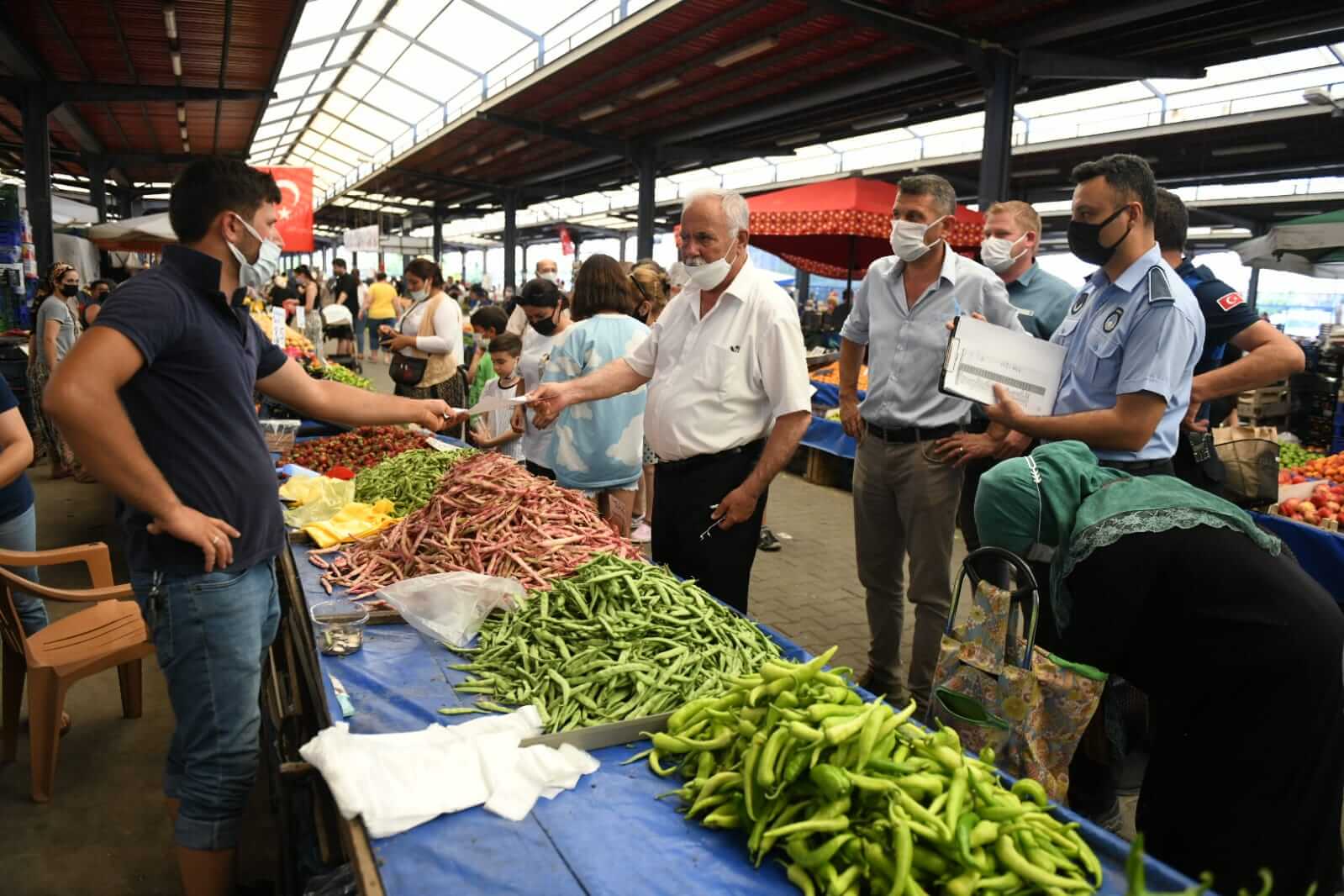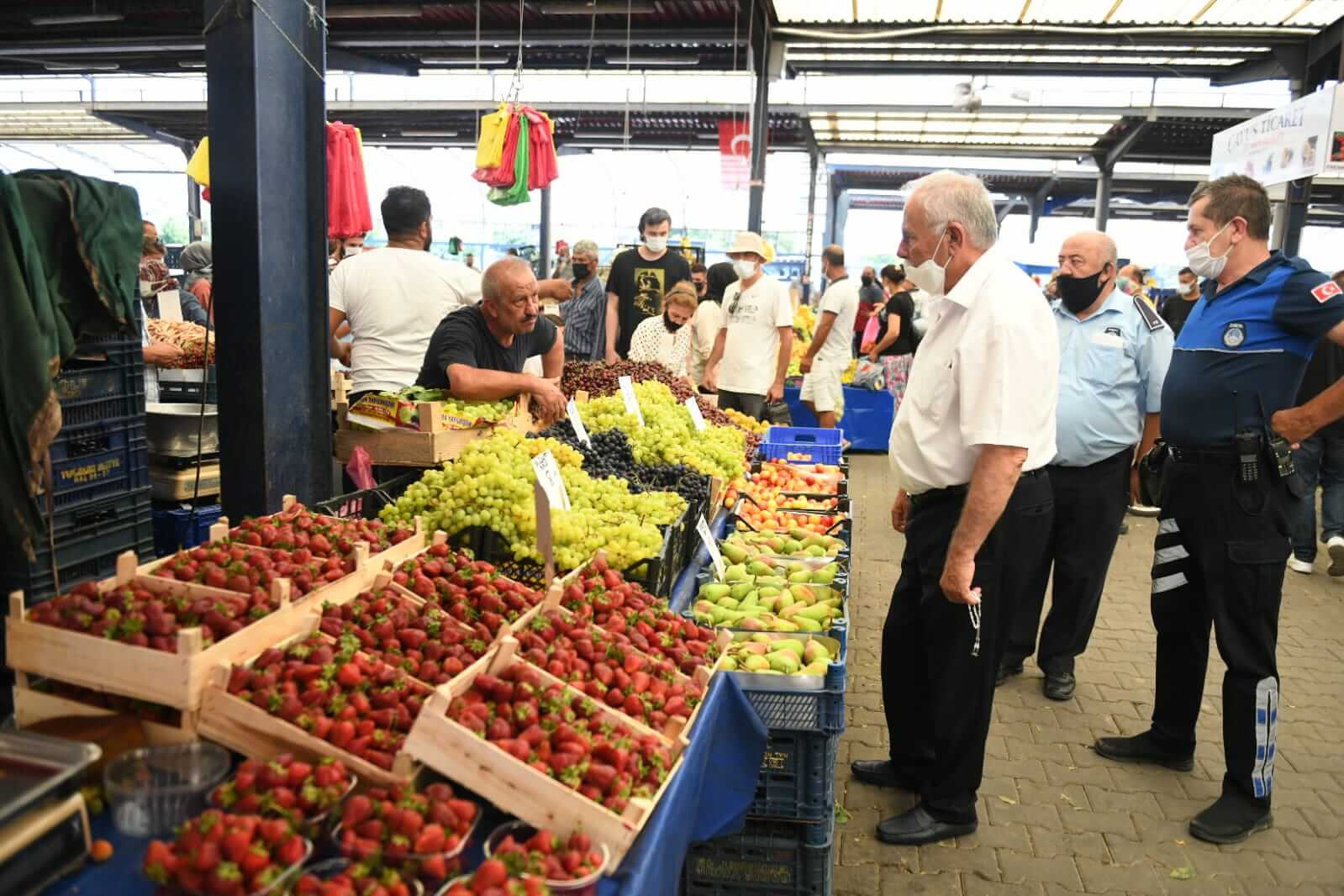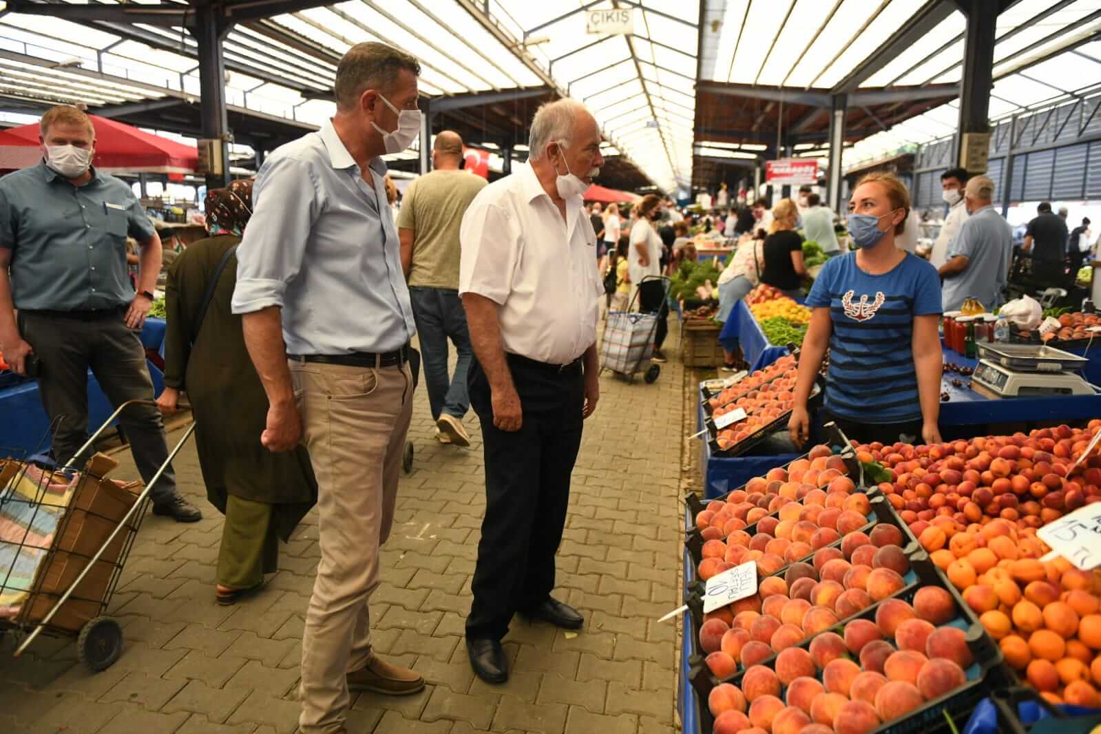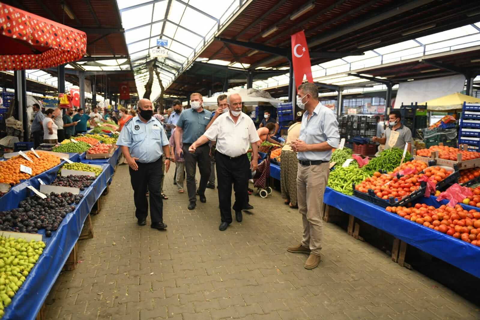 Belediye Başkanı Ülgür Gökhan, denetimli normalleşme kapsamında pazar yerinde alınan tedbirleri denetledi.