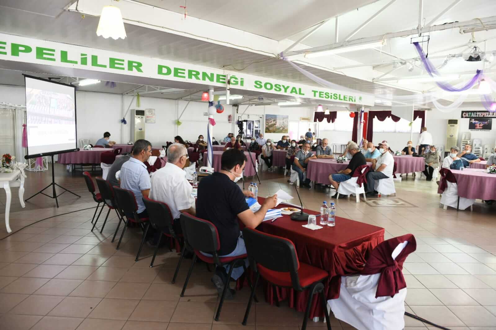 Çataltepeliler Derneği’nde 16 Temmuz 2021 Cuma günü gerçekleştirilen bilgilendirme toplantısına Belediye Başkanı Ülgür Gökhan, Belediye Başkan Yardımcıları, Belediye Meclis Üyeleri, İsmetpaşa Mahallesi Muhtarı Özkan Vural, birim müdürleri ile Sosyal Konutlar sakinleri katıldı.