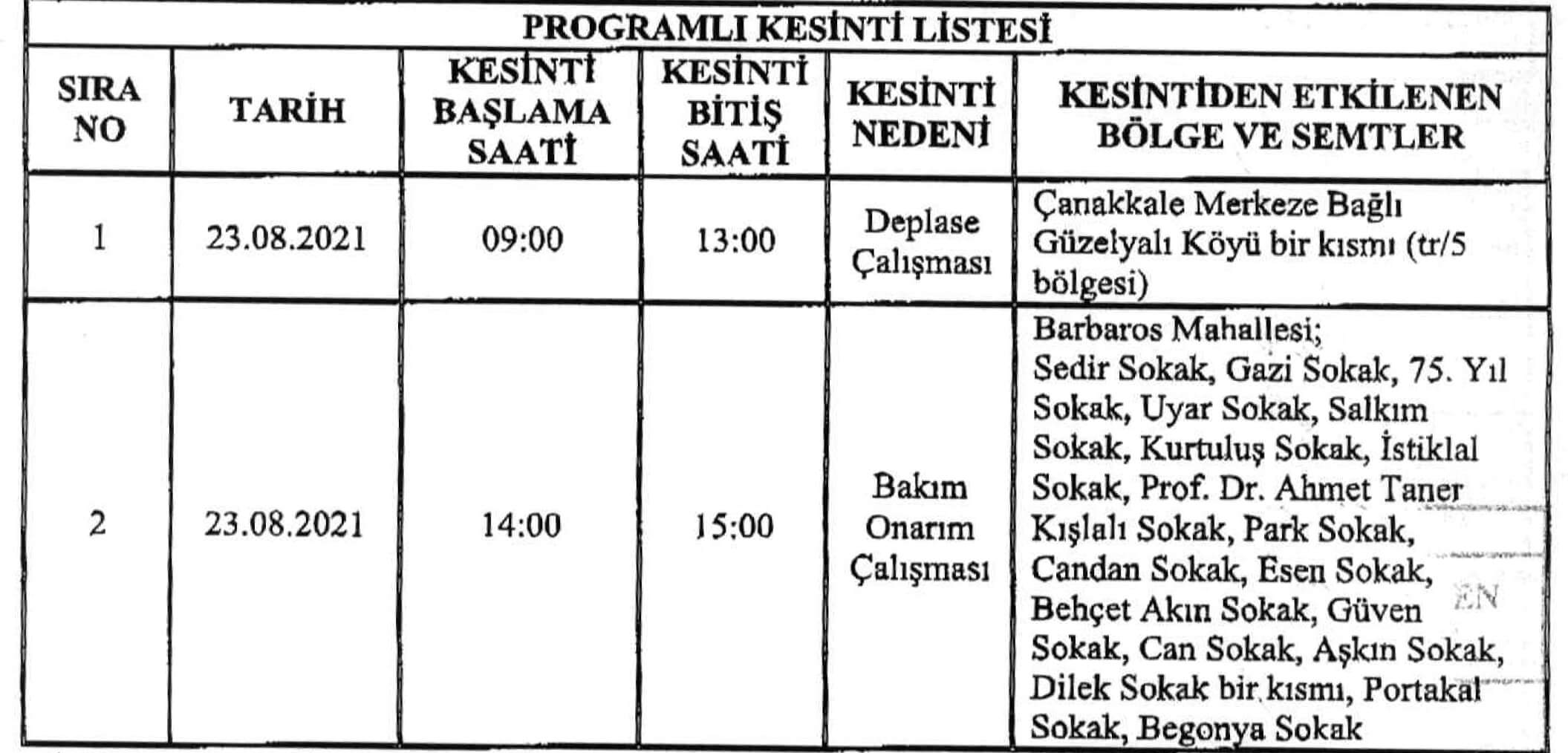 Uludağ Elektrik Dağıtım A.Ş. Çanakkale İşletme Bakım Mühendisliğinden yapılan açıklamaya göre;