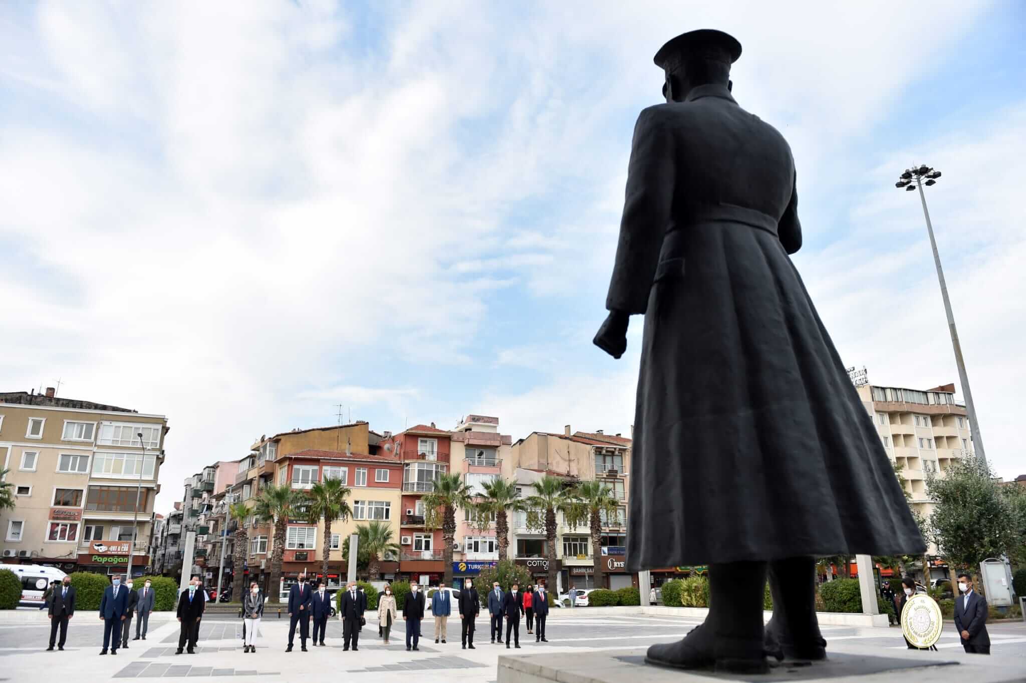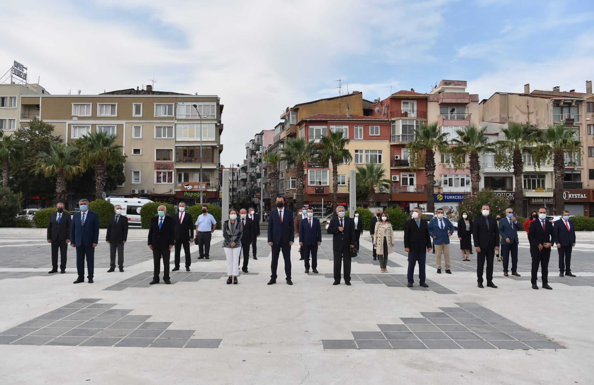 Cumhuriyet Meydanı’nda düzenlenen çelenk sunma törenine Belediye Başkan Yardımcısı Rebiye Turan Ünüvar, İl Milli Eğitim Müdürü Ferhat Yılmaz ve protokol üyeleri katıldı. Saygı duruşu ve İstiklal Marşı’nın okunması ile başlayan tören, Atatürk Anıtına çelenk sunulması ile sona erdi.