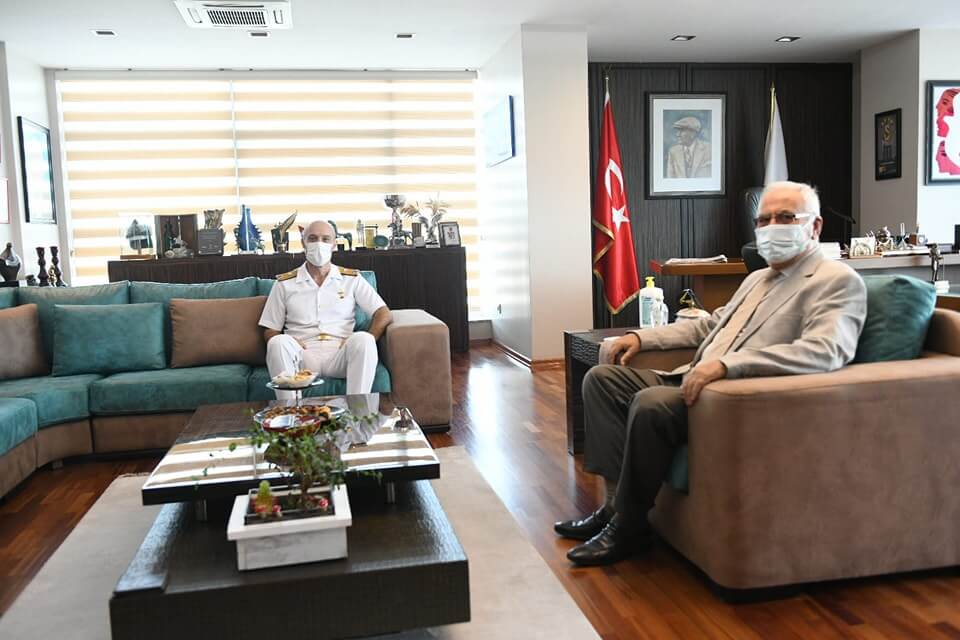 Çanakkale Boğaz ve Garnizon Komutanı Tuğamiral Mustafa Turhan Ecevit, Belediye Başkanı Ülgür Gökhan’a nezaket ziyaretinde bulundu.