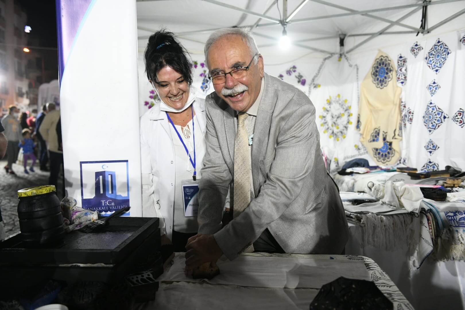 İskele Meydanı’nda gerçekleştirilen açılış törenine Vali İlhami Aktaş, Boğaz ve Garnizon Komutanı Tuğamiral Mustafa Turhan Ecevit, Çanakkale Belediye Başkanı Ülgür Gökhan, Ak Parti Genel Sekreteri ve Ankara Milletvekili Fatih Şahin, Ak Parti Grup Başkanvekili ve Çanakkale Milletvekili Bülent Turan, AK Parti Çanakkale Milletvekili Jülide İskenderoğlu’nun yanı sıra protokol üyeleri ve kentliler katıldı. Saygı duruşu ve İstiklal Marşı’nın okunması ile başlayan tören, açılış konuşmaları ile devam etti. Konuşmaların ardından UNESCO’nun Somut Olmayan Kültürel Mirasın Korunması Sözleşmesi kapsamında “Yaşayan İnsan Hazinesi” seçilen Seramik Ustası İsmail Bütün ve Kıspet Ustası İrfan Şahin’e plaket takdim edildi.