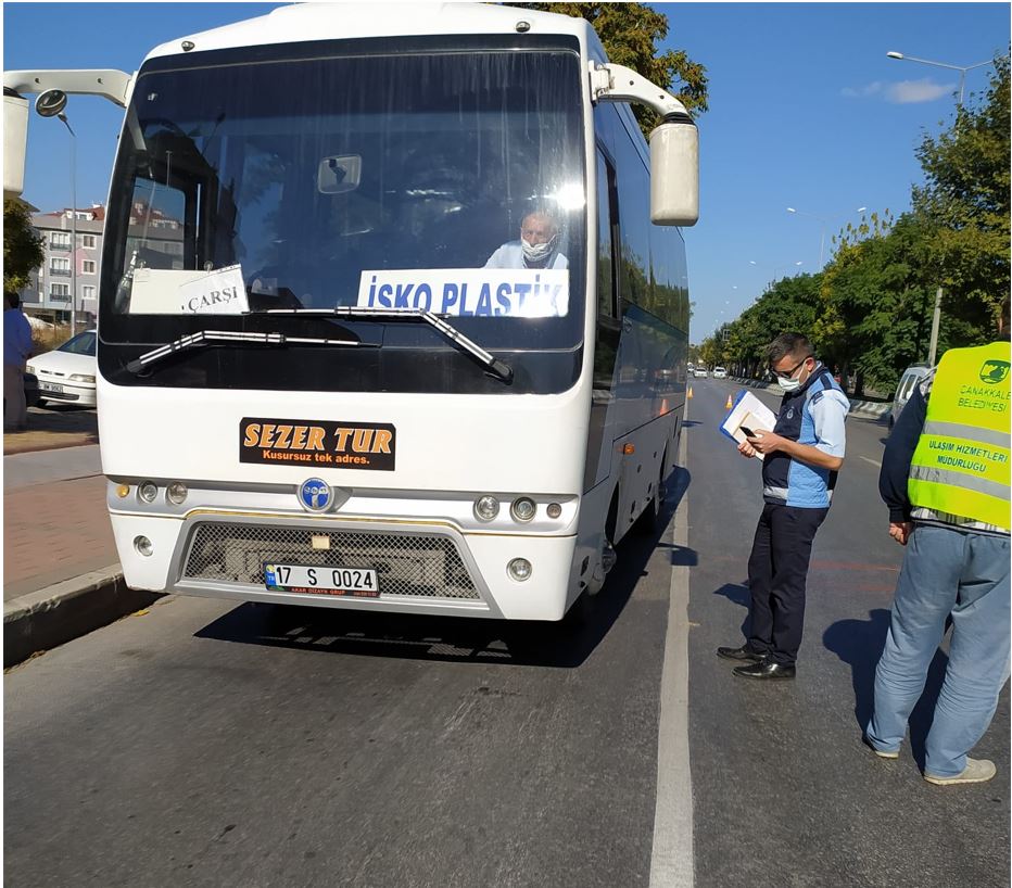 Çanakkale Belediyesi Ulaşım Hizmetleri Müdürlüğüne bağlı denetim ekipleri, İl Emniyet Müdürlüğü Trafik Ekipleri ortaklığında gerçekleştirilen çalışma kapsamında, kentte hizmet veren ticari taksi, okul ve personel servislerinin yanı sıra ilçe ve köy minibüslerine yönelik denetim gerçekleştirildi.
