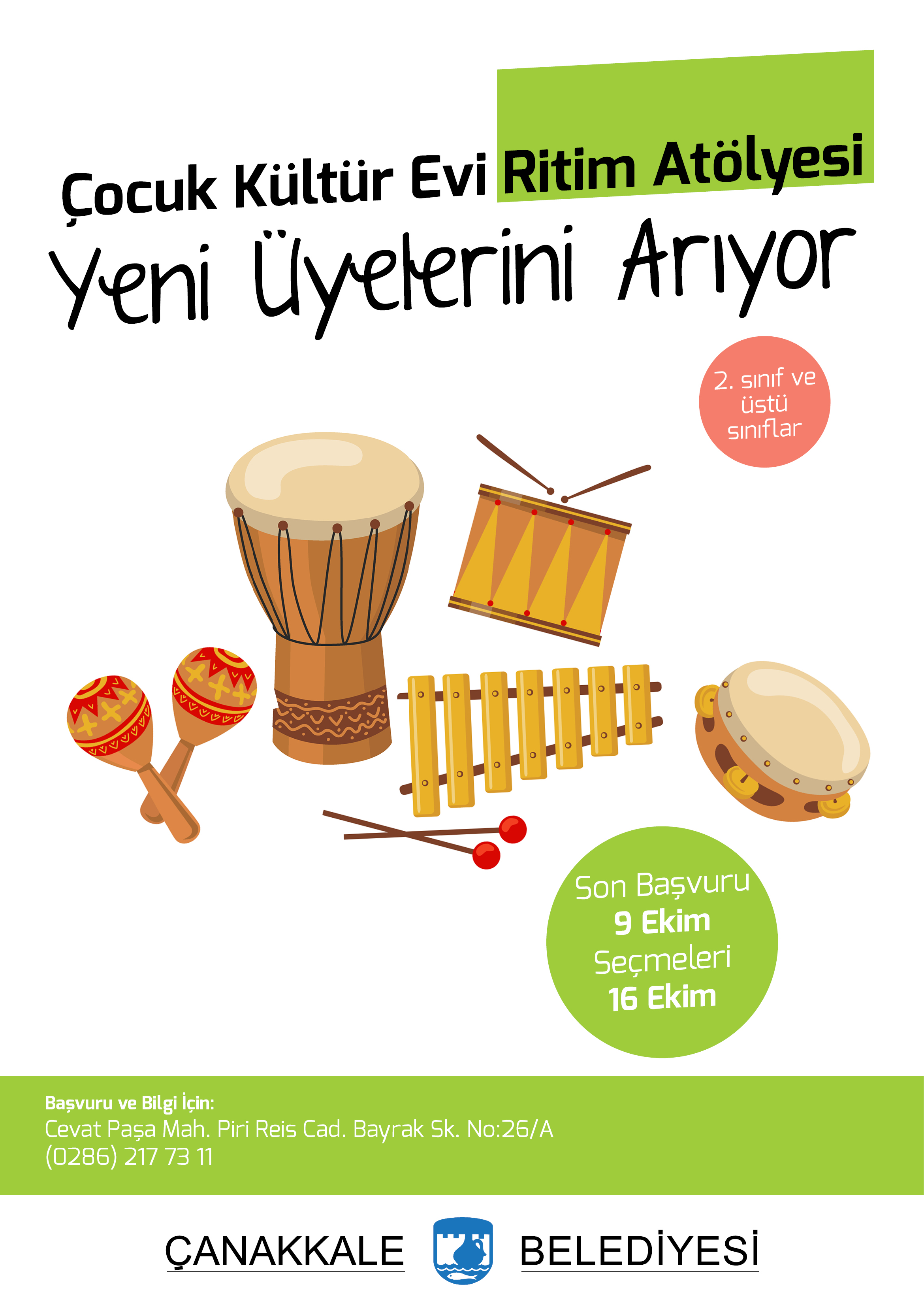 9 Ekim 2021 tarihine kadar başvuru yapılabilen ve 16 Ekim 2021 tarihinde üye seçmeleri gerçekleşecek olan “Çocuk Kültür Evi Ritim Grubu” ile 16 Ekim 2021 tarihine kadar başvuru yapılabilen ve 23 Ekim 2021 tarihinde üye seçmeleri gerçekleşecek olan "Çocuk Kültür Evi Orkestrası" aracılığıyla çocukların grupla enstrüman çalma becerisi kazanmaları sağlanarak özgüvenlerinin gelişmesine ve müzik yoluyla kendilerini ifade etmelerine katkı sunulması hedefleniyor.