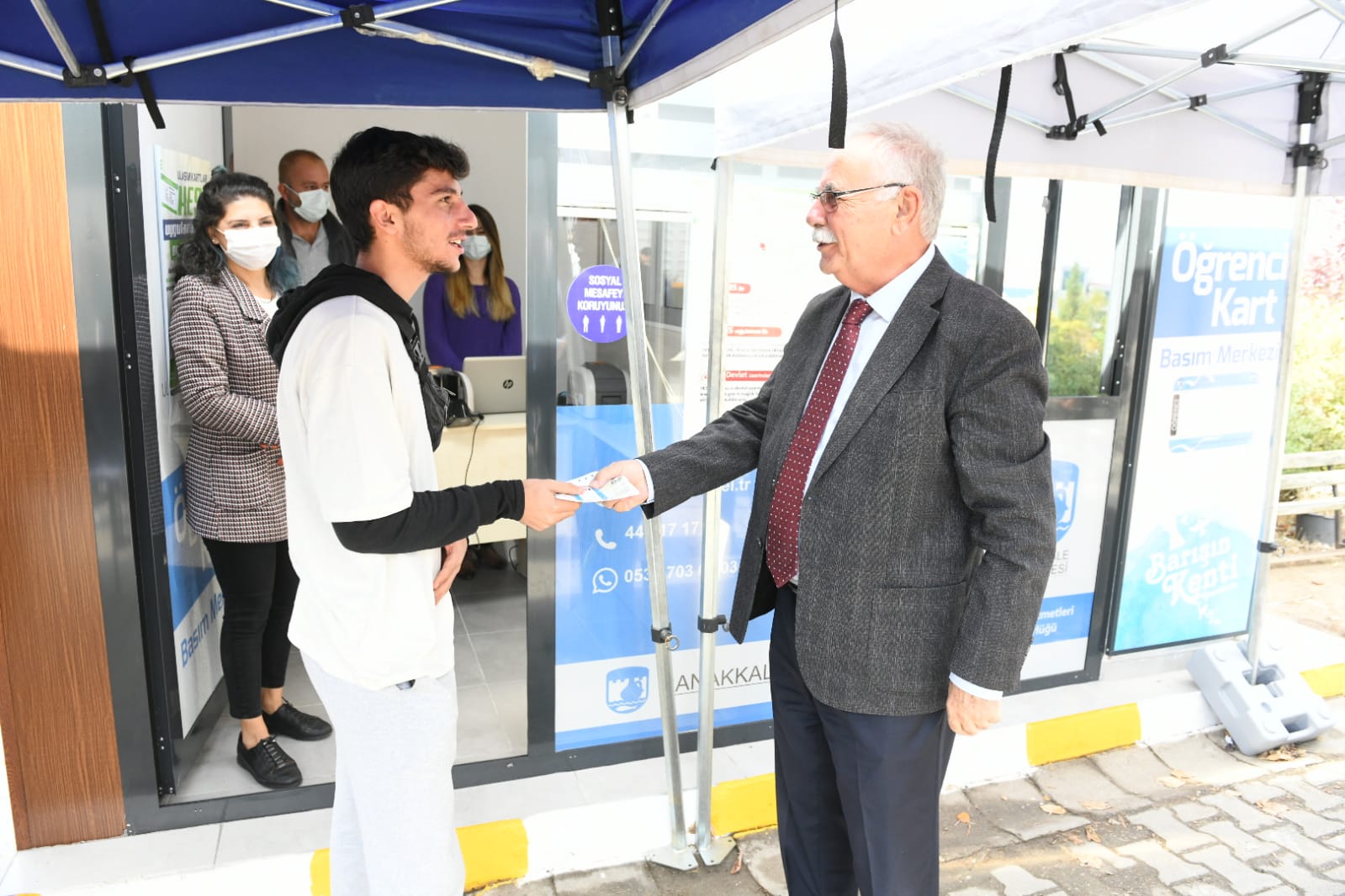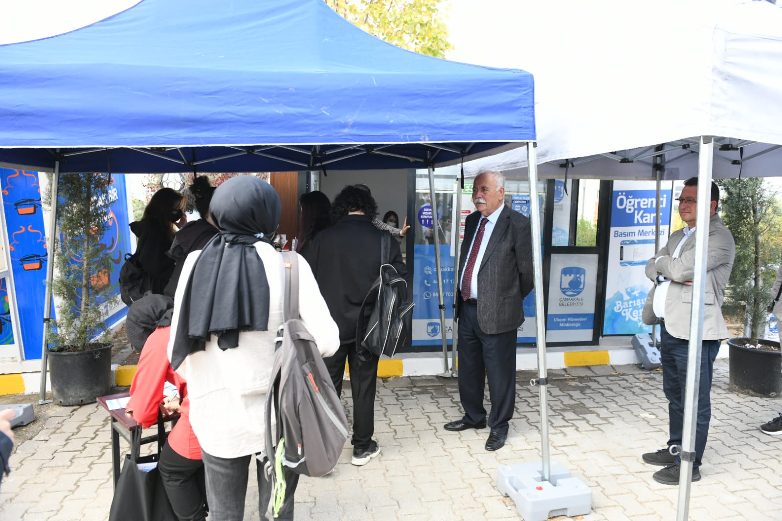Üniversite öğrencilerinin kent içi ulaşım kartlarına kolay bir şekilde ulaşabilmesi amacı ile Çanakkale Belediyesi Ulaşım Hizmetleri Müdürlüğünce ÖSEM binası önünde kurulan kart basım merkezini ziyaret eden Başkan Gökhan, çalışmaları yerinde inceleyerek, kart basım işlemlerine ilişkin bilgi aldı. Kart basım merkezinde öğrenciler ile bir süre sohbet eden Başkan Gökhan, başarılı bir yıl geçirmeleri temennisinde bulundu.