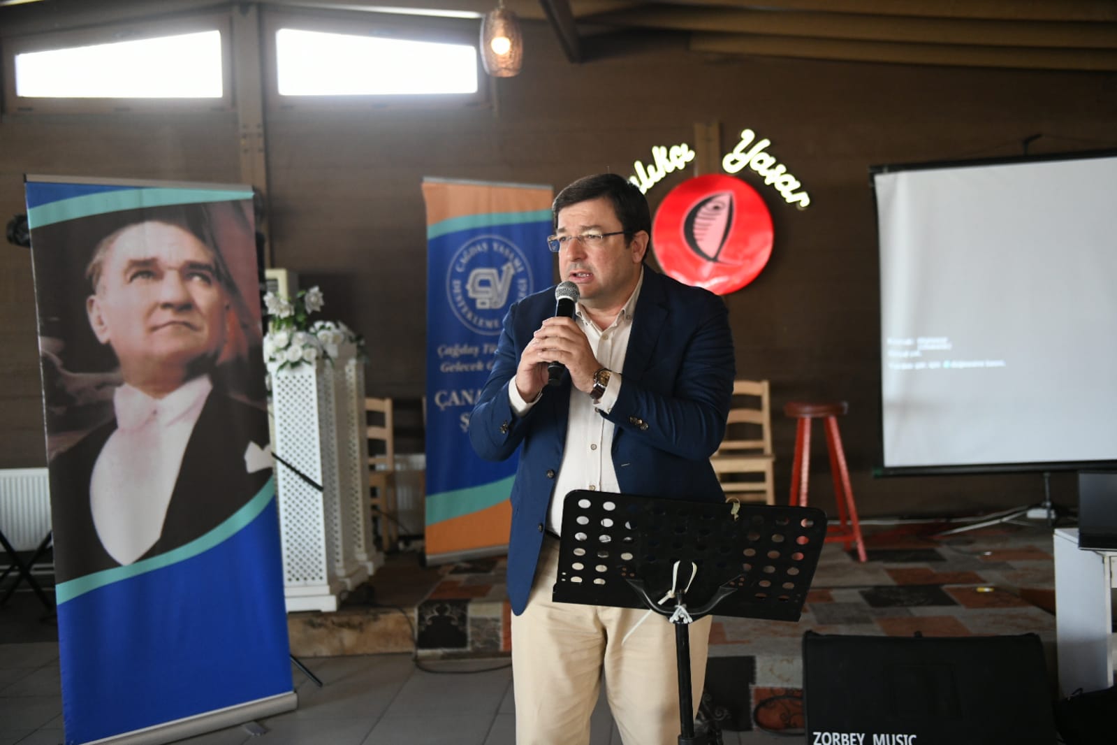 Etkinlikte konuşma yapan Şube Başkanı Kaynaş, dernek faaliyetleri hakkında bilgi verirken, derneğe destek veren üye ve gönüllülere teşekkürlerini sundu. Kaynaş'ın ardından söz alan Başkan Gökhan, derneğin çocuk ve gençlerin iyi bir şekilde yetiştirebilmesi için büyük bir uğraş verdiğini ifade ederek; “Çocuklarımızı ve gençlerimizi laik, demokratik Türkiye Cumhuriyeti'ne yaraşır bir şekilde yetiştirmemiz lazım. Bu görev hepimize düşüyor. Sadece derneklere veya kurumlara değil, bu görev tüm topluma düşüyor. Çağdaş Yaşamı Destekleme Derneği, bu konuda önemli rol oynayan derneklerin başında geliyor. Özelikle kurucusu Türkan Saylan Hocamızı rahmetle anmak istiyorum. Onun o camdaki fotoğrafını ve ona yapılanları unutmayalım. Bu ülkenin çağdaş bir kadınını nasıl yok etmeye çalıştıklarını asla unutmayalım. Türkan Saylan'ın gösterdiği mücadele ile ayakta kalmış olan Çağdaş Yaşamı Destekleme Derneği'ni yaşatmak hepimizin görevi olmalı” dedi.
