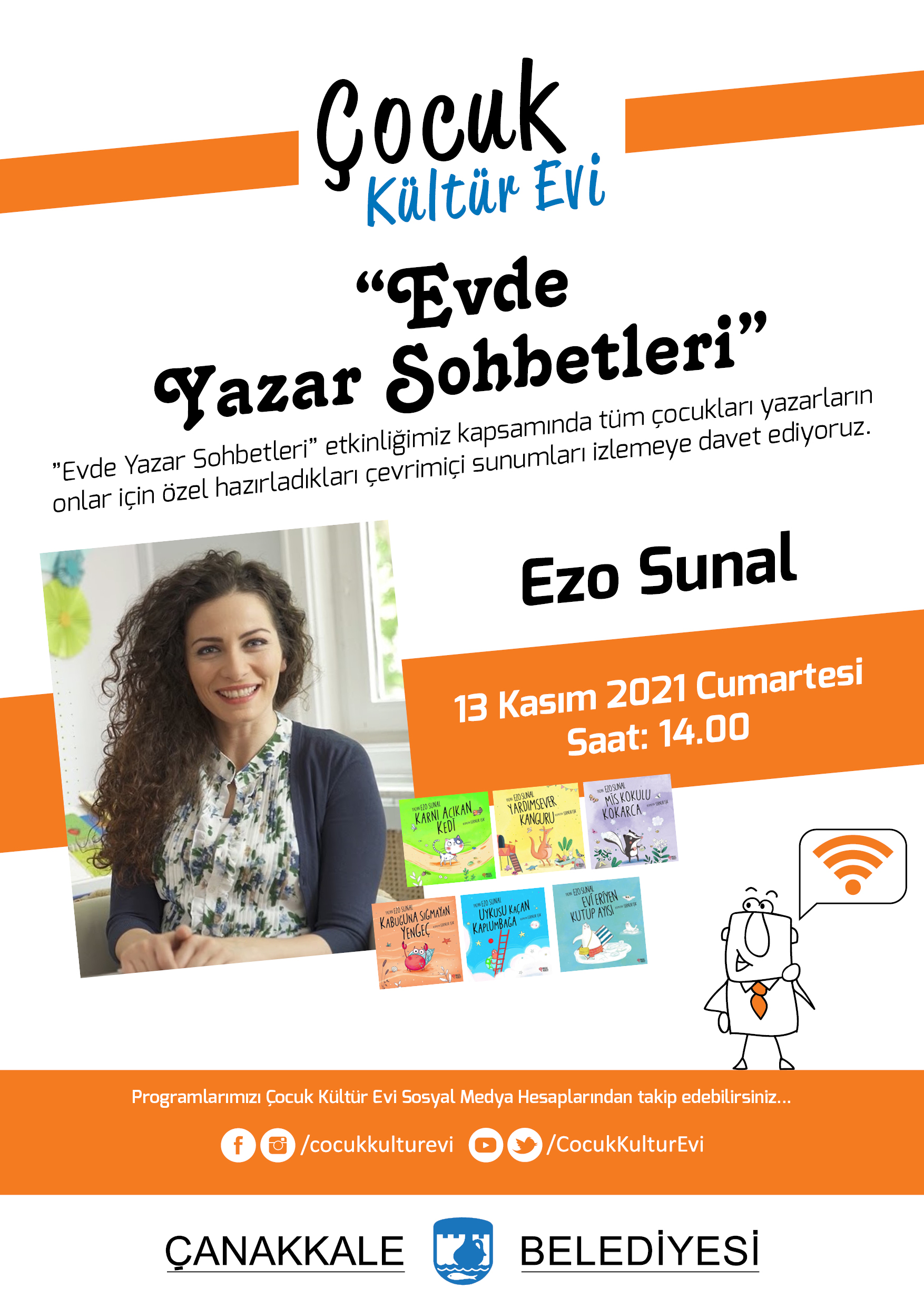 Çanakkale Belediyesi Çocuk Kültür Evi, çocukları yazarlar ve farklı disiplinlerden sanatçılarla buluşturmaya devam ediyor. “Evde Yazar Sohbetleri” başlığıyla çevrim içi olarak yürütülenve Çocuk Kültür Evi‘nin sosyal medya hesapları üzerinden paylaşıma açılan video sohbetlerin kasım ayı konuğu çocuklar için yazdığı renkli kitaplarla tanınan Ezo Sunal olacak.