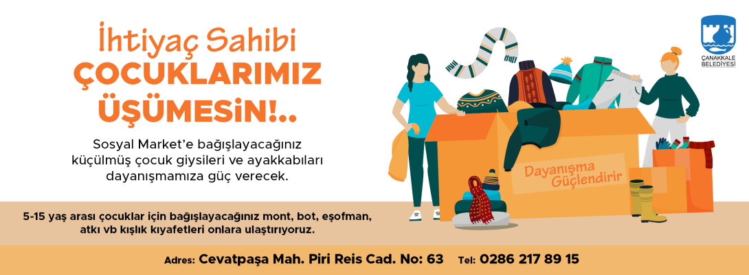 Sosyal Market’e bağışlayacağınız küçülmüş çocuk giysileri ve ayakkabıları dayanışmamıza güç verecek.