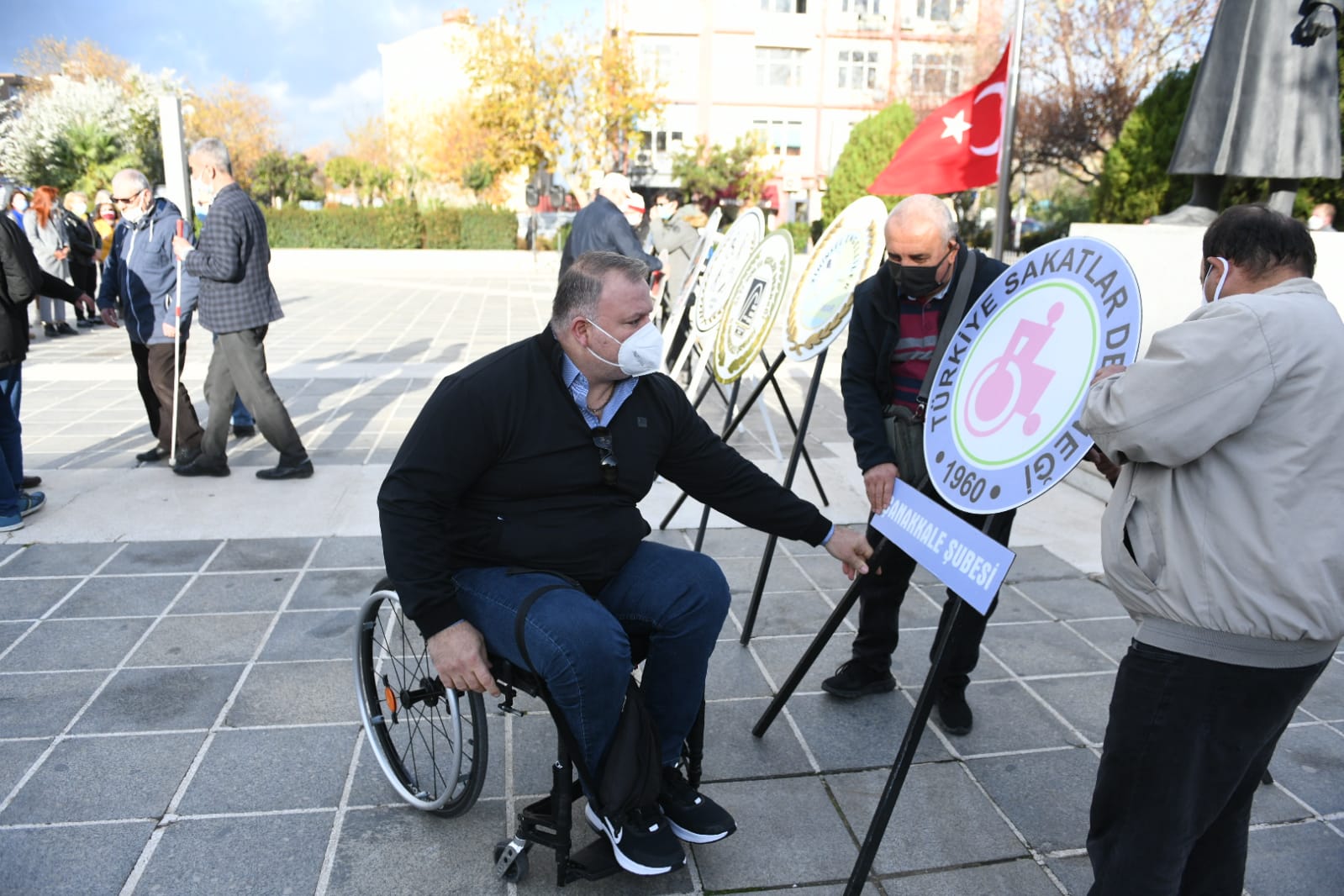 Dünya Engelliler Günü nedeniyle Çanakkale Kent Konseyi Engelliler Meclisi tarafından düzenlenen törene Belediye Başkanı Ülgür Gökhan, Belediye Başkan Yardımcısı Rebiye Turan Ünüvar, engelli STK'ları ve siyasi parti temsilcileri katılım gösterdi. STK'ların Atatürk anıtına çelenk sunulması ile başlayan tören, İstiklal Marşı ve saygı duruşu ile devam etti. Ardından günün anlam ve önemine ilişkin yapılan konuşma ile tören son buldu.