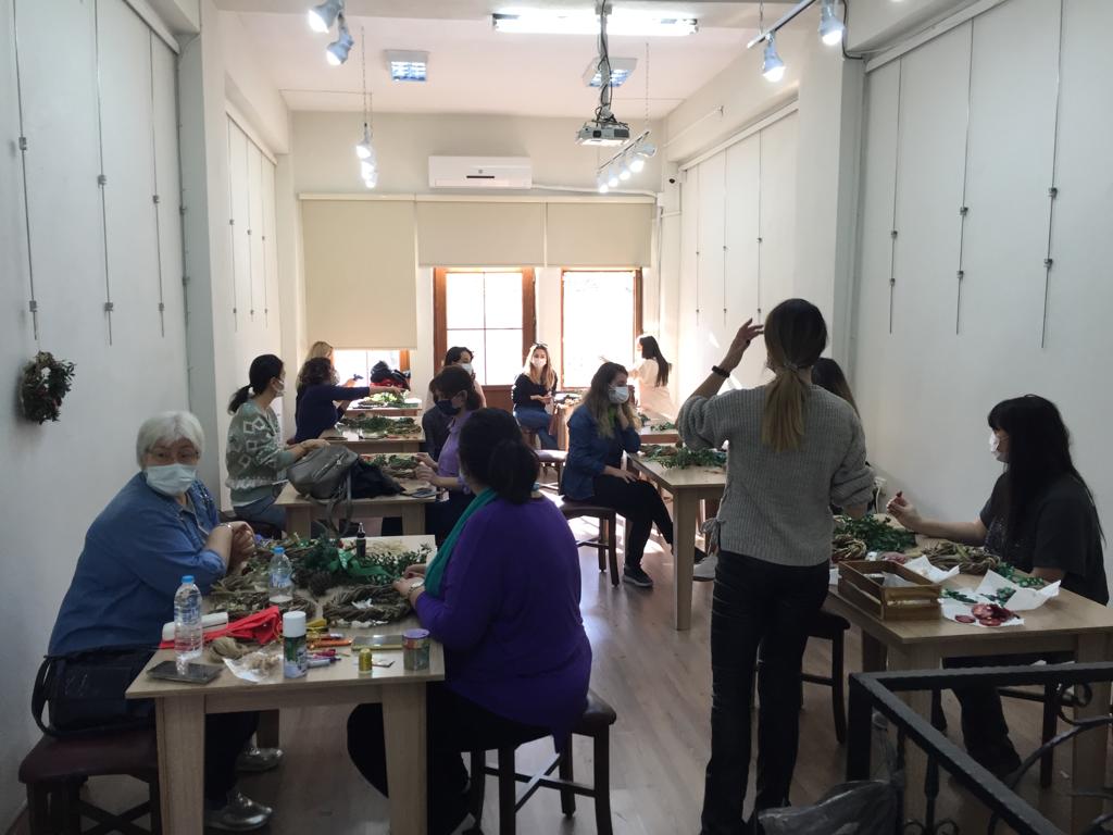 5 Aralık Pazar günü saat 14.00’te başlayan atölye, yaklaşık 2 saat sürdü. Yasemin Doryan’ın kolaylaştırıcılığında devam eden atölyede, tüm katılımcılar keyifli anlar yaşadı. Katılımcılar, bir yılbaşı geleneği olan kapı süslerini el emekleri ve özgün tasarımlarıyla şekillendirdi.