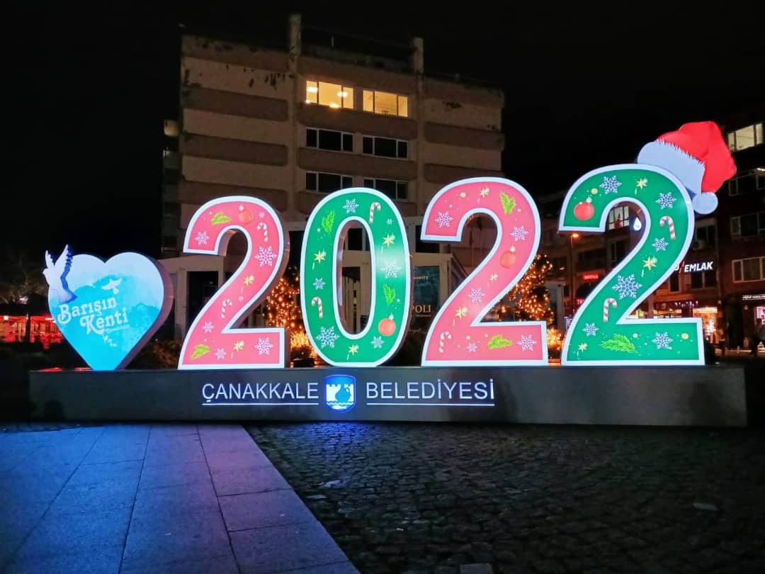 Çanakkale Belediyesi tarafından düzenlenen yeni yıl etkinliği kapsamında İskele Meydanı’na yerleştirilen 2022 yazılı yeni yıl platformu kentlilerden büyük ilgi gördü.
