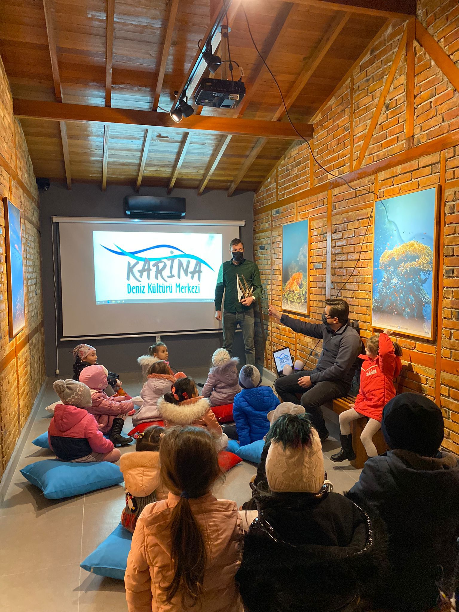 Çarşamba ve Cuma günleri sadece okul ziyaretlerine açık olan Karina Deniz Kültürü Merkezi, Çanakkale Belediyesi Atam Kreş ve Gündüz Bakım Evi’nin minik öğrencilerini ağırladı. Merkezi ziyaret eden Atam Kreş ve Gündüz Bakım Evi Güneş, Dünya ve Gökkuşağı öğrencileri, ziyarette unutamayacakları bir deneyim yaşayarak keyifli vakit geçirdi. Merkez binasını gezen minik öğrenciler, teknik personelden burada gerçekleştirilen faaliyetler, akvaryumda ve sergi alanında sergilenen balık ve çeşitli deniz canlılarına ilişkin bilgi aldı.