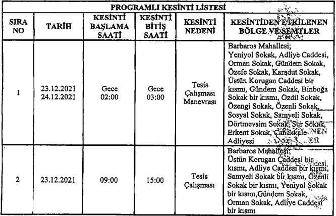 Enerji Nakil Hatlarında yapılacak olan tesis çalışması ve manevrası kapsamında görselde belirtilen tarih ve belirtilen yerlerde elektrik kesintisi uygulanacaktır.