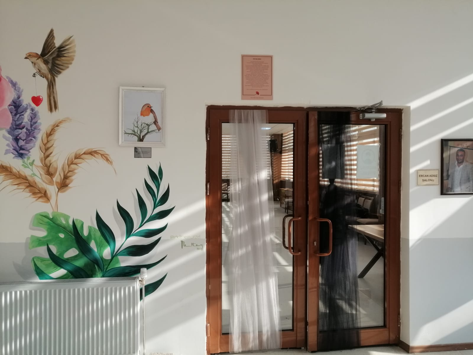 Ressam Hatice Kapusuz'un 10 Aralık 2021'de İstanbul'da açılan "Barışa Uçan Kanatlar" sergisinde sergilenen resimlerinden Ercan Adsız’ı temsil eden resim, Belediye Çalışanları Sosyal Tesisi Ercan Adsız Salonu girişine asıldı.
