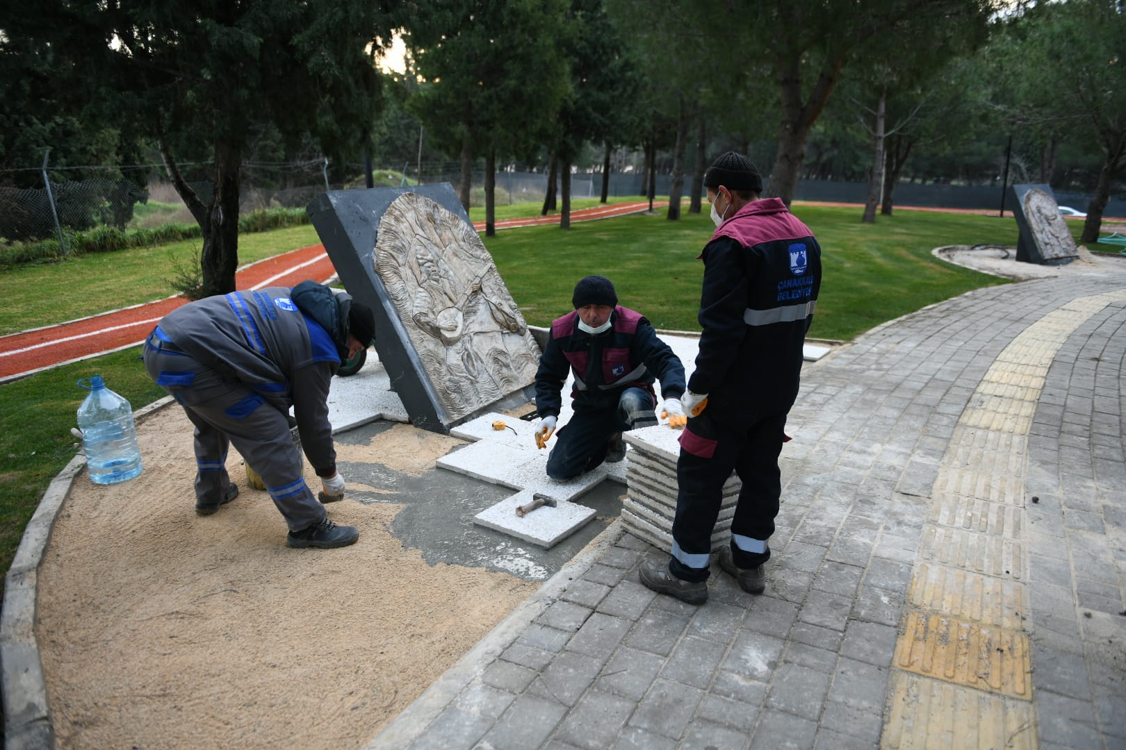 Başkan Gökhan, Belediye Başkan Yardımcısı Özleyiş Çetin, birim müdürleri ve teknik ekip ile birlikte çalışmaları tamamlanarak kentlilerin kullanımına açılan parkta incelemelerde bulundu. Park alanında tamamlanan peyzaj düzenlemelerini yerinde inceleyen Başkan Gökhan, burada sergilenecek olan rölyeflerin yerleştirme çalışmalarında gelinen son durum hakkında bilgi aldı.