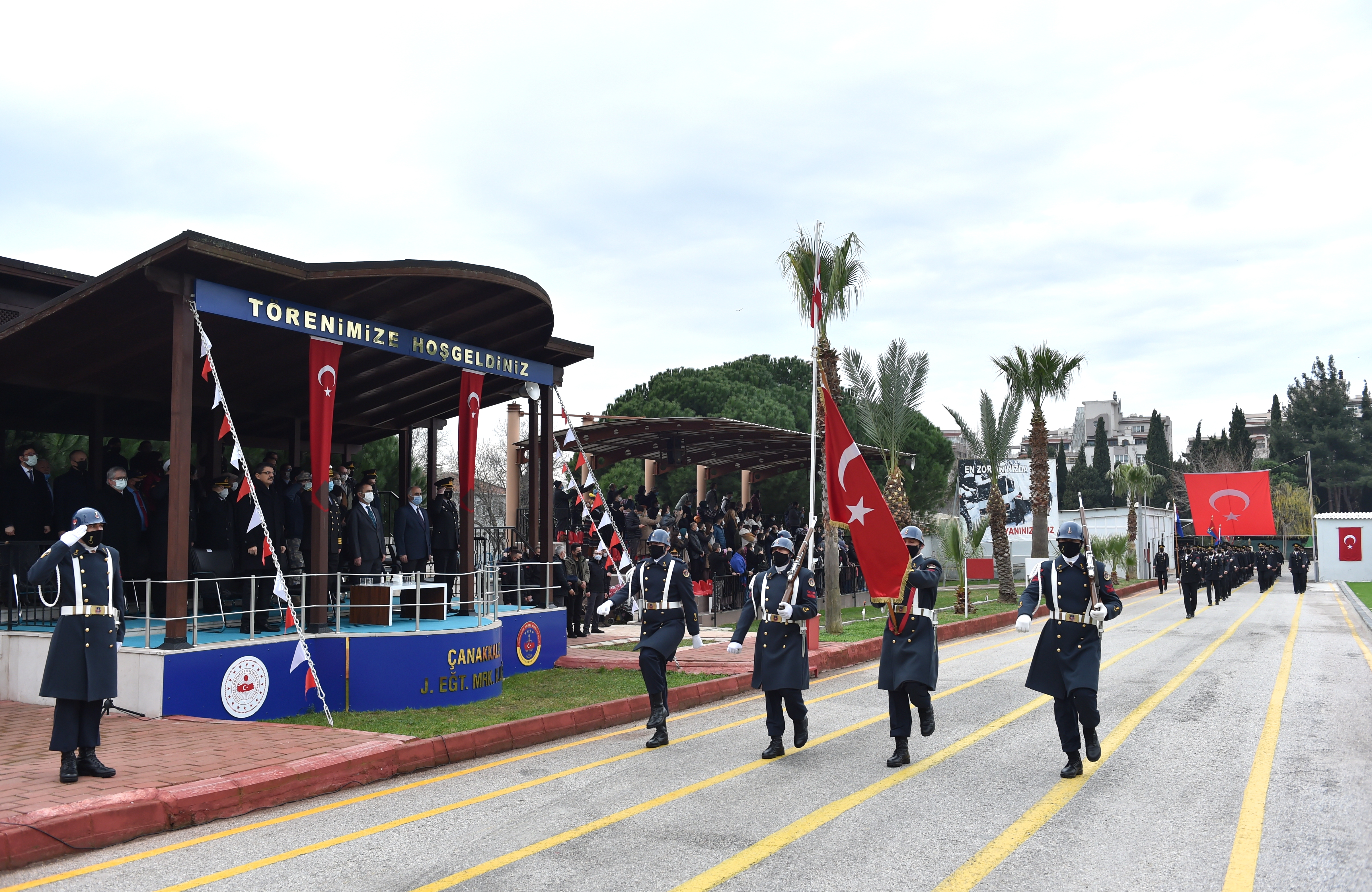 Belediye Başkan Vekili Süleyman Canpolat , 7 Ocak 2022 Cuma günü Çanakkale 116. Jandarma Eğitim Alay Komutanlığı tarafından düzenlenen 385. Dönem Karışık Sınıf Yedek Subay Adaylarının Mezuniyet Törenine katıldı .