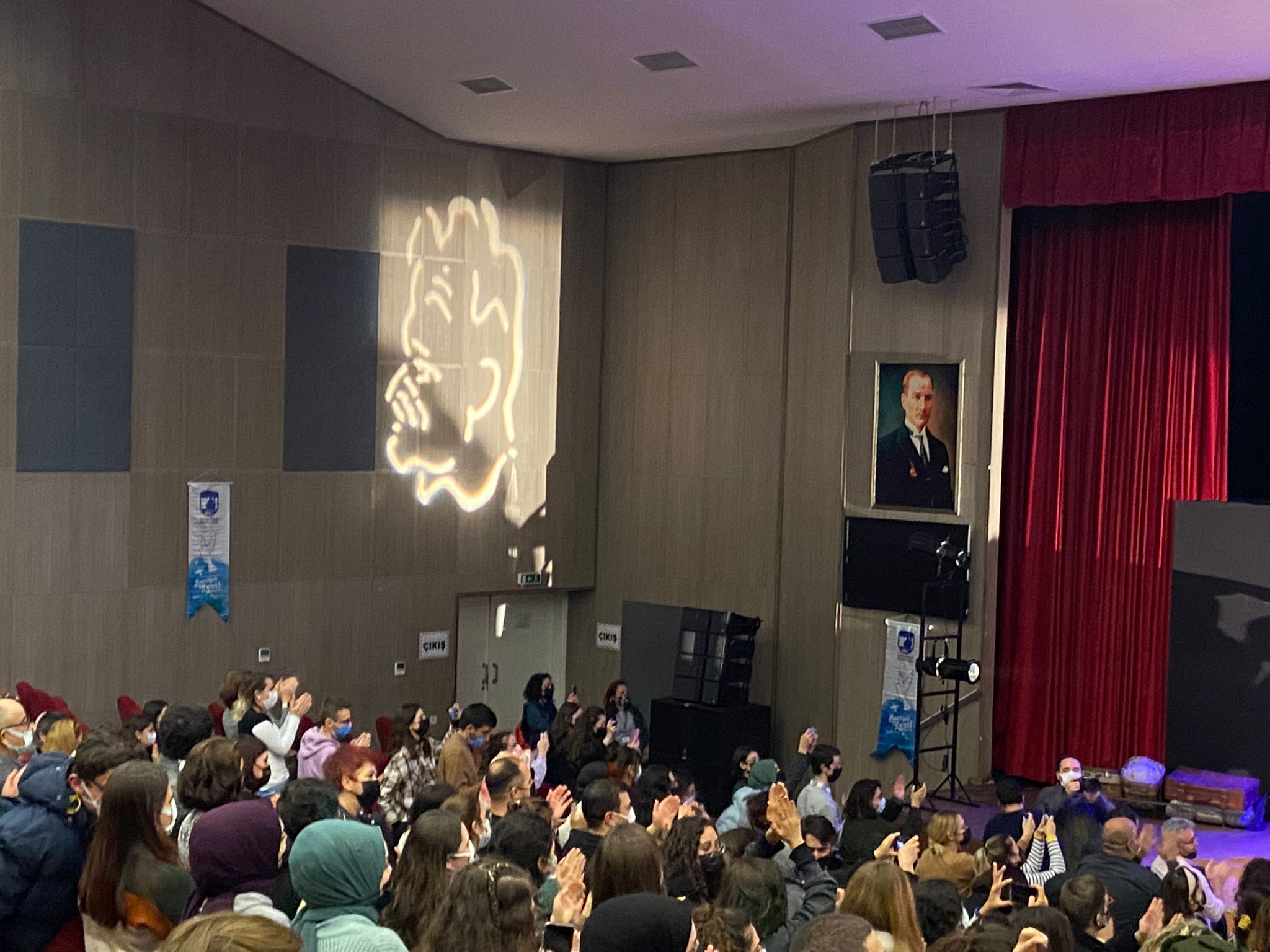 ÇOMÜ İÇDAŞ Kara Yusuf Kongre Merkezi'nde 11 Ocak 2022 Salı günü sahnelenen oyuna Belediye Başkanı Ülgür Gökhan, eşi Hale Gökhan, Belediye Başkan Yardımcısı M. İrfan Mutluay ve çok sayıda kentli katıldı.
