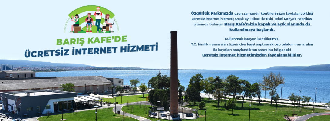 Özgürlük Parkımızda uzun zamandır kentlilerimizin faydalanabildiği ücretsiz internet hizmeti; Ocak ayı itibari ile Eski Tekel Kanyak Fabrikası alanında bulunan Barış Kafe’mizin kapalı ve açık alanında da kullanılmaya başlandı.