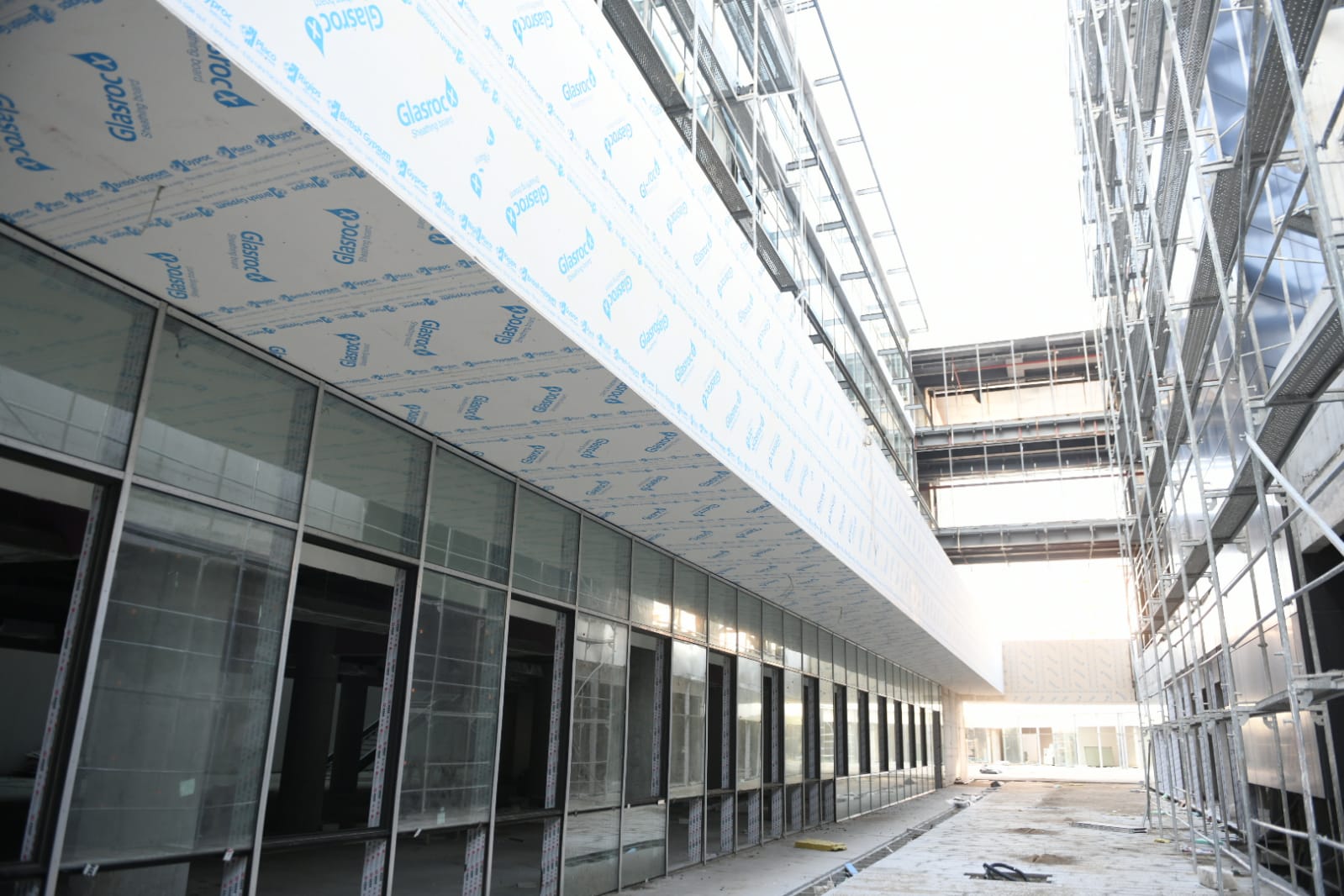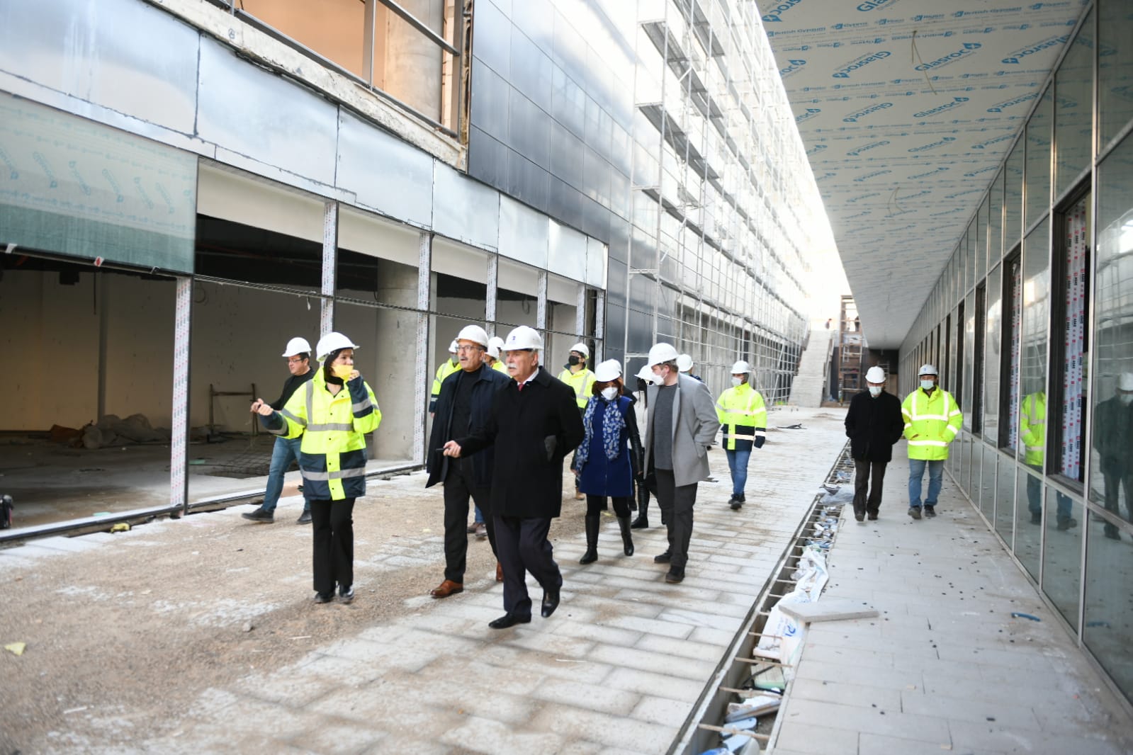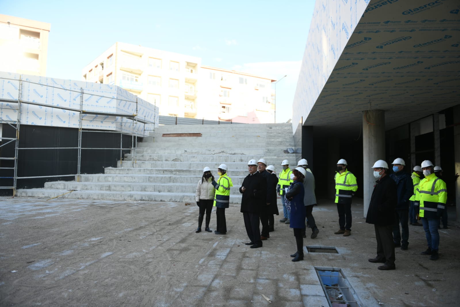 Bina dış cephesinde kapaklı ve silikon cam cephe kaplamaları, GFRC Prekast Cephe kaplamalarında sona yaklaşılırken, güneş kırıcı ve kediyolu imalatlarına belirlenen program çerçevesinde devam ediliyor. Avlu granit taş kaplaması, kent meydanına ait saha betonu işleri ve meydana ait parapet duvarlarının kaplama işi büyük ölçüde tamamlandı. Bahar aylarında yağış durumuna göre kent meydanı yalıtım işleri tamamen yapılarak, meydan kaplamasının tamamlanması planlanıyor. Avluya inen bir panaromik asansör bir de engelli liftine ait montaj çalışmaları ile bina çatısında bulunan güneş panellerini taşıyacak olan kaidelere ait çalışmalara devam ediliyor.