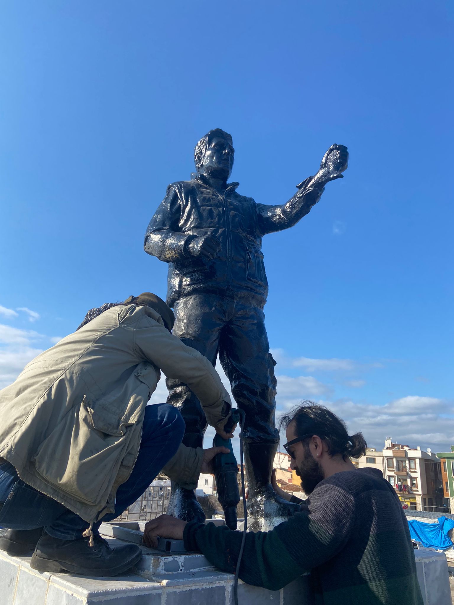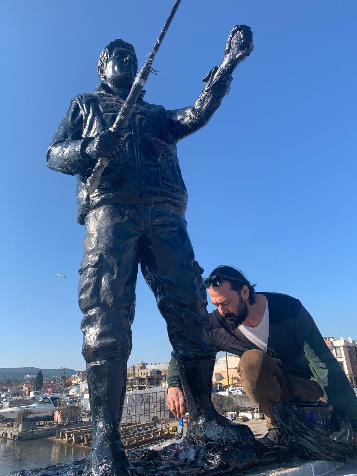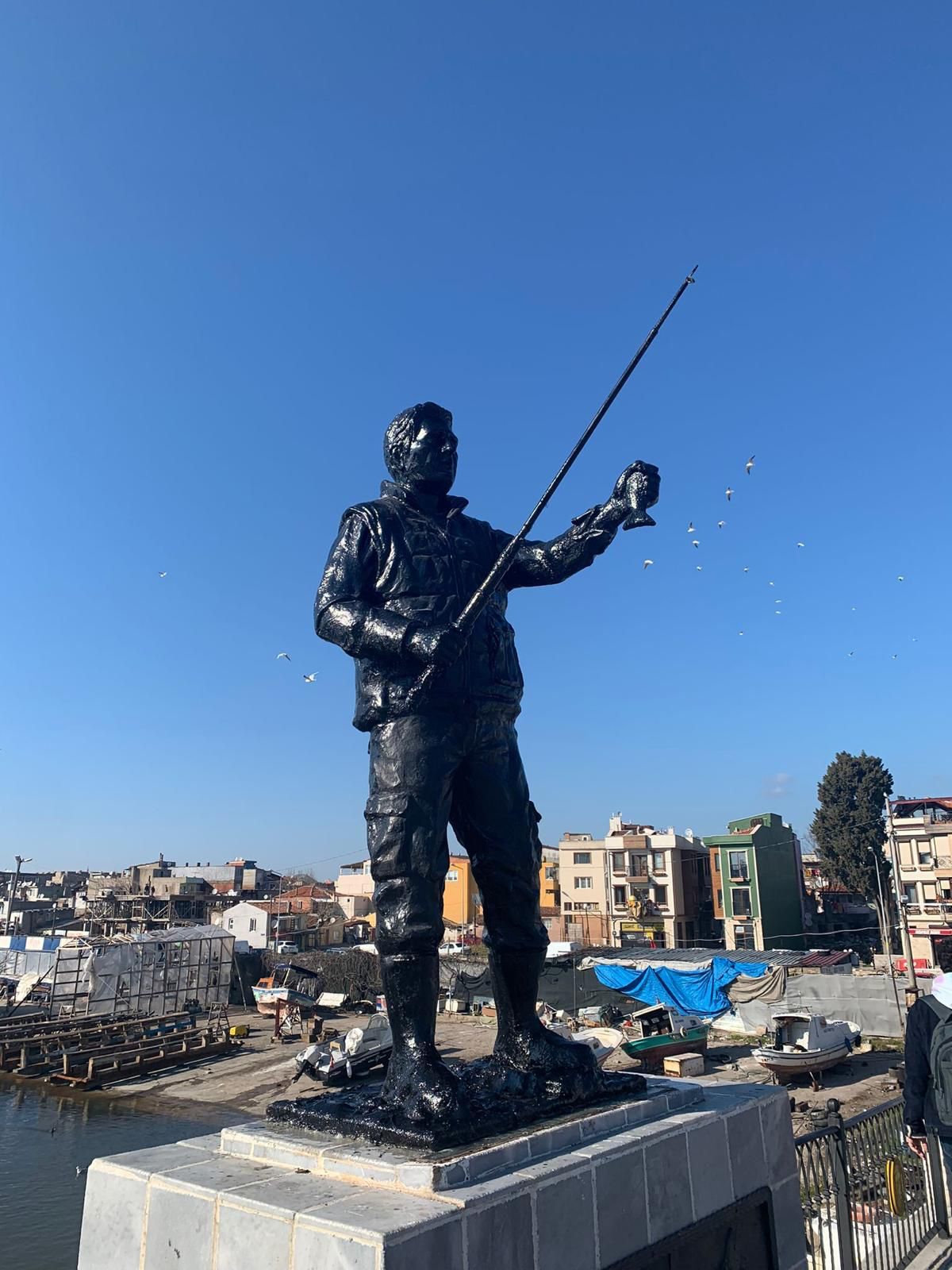 İnönü Köprüsü'nde bulunan balık tutan adam heykeli onarıldı.