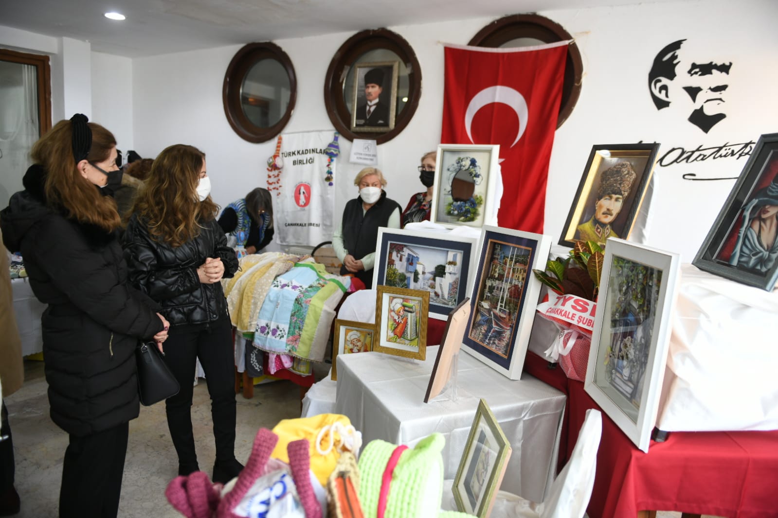 Çanakkale Belediyesi Türkan Saylan Sosyal Tesisleri'nde düzenlenen sergi açılışına Belediye Başkan Yardımcısı Rebiye Turan Ünüvar, Belediye Başkanı Ülgür Gökhan'ın eşi Hale Gökhan, Türk Kadınlar Birliği üyeleri ile kentliler katıldı.
