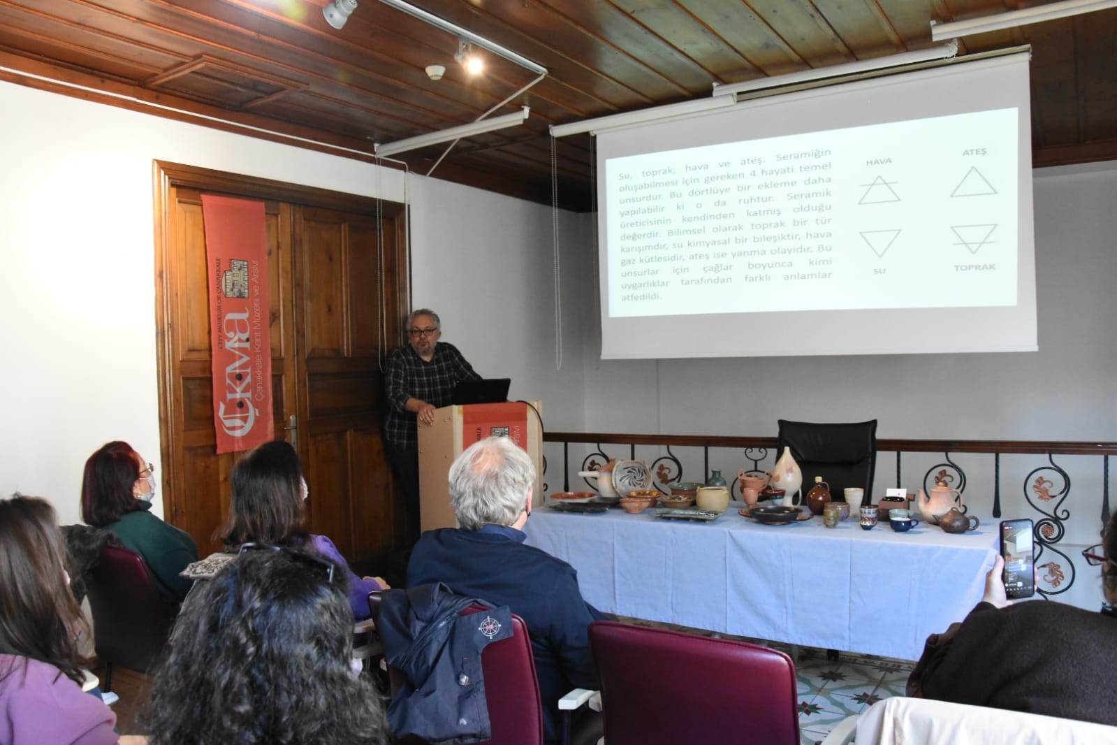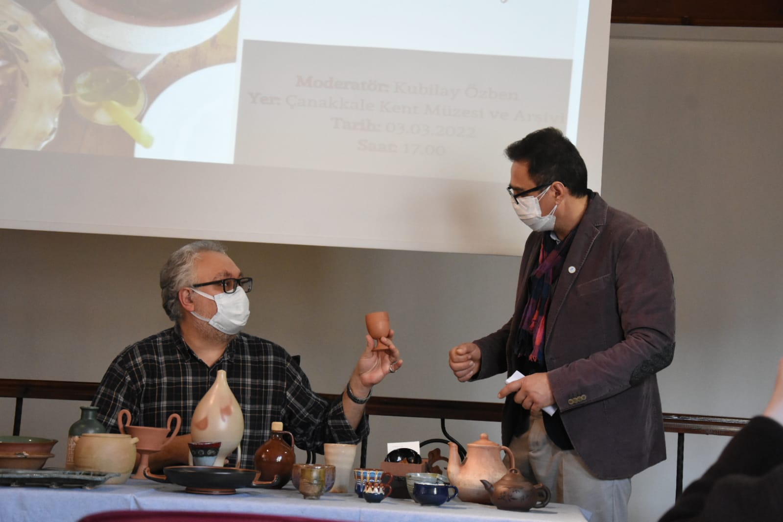 Çanakkale Onsekiz Mart Üniversitesi Güzel Sanatlar Fakültesi Seramik Bölümü Başkanı Öğretim Üyesi Prof. Dr. Fatih Karagül’ün hazırlayıp sunduğu etkinliğin moderatörlüğünü Kubilay Özben yaptı. “Genel Hatlarıyla Gastronomi ve Seramik İlişkisi” başlığında sunum yapan Karagül, tarihten günümüze kadar uzanan seramik kapların yeme içme kültüründeki yer ve önemine değindi.