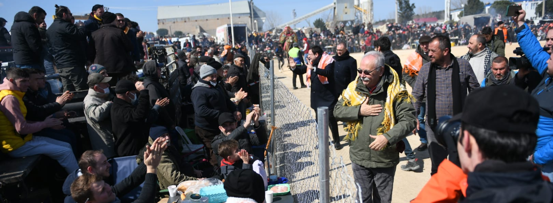 Sabahın erken saatlerinden itibaren çok sayıda kentlinin katılımı ile başlayan deve güreşleri ilgi ile izlendi. Belediye Başkanı Ülgür Gökhan da güreş alanını gezerek, güreşi izlemeye gelen vatandaşları selamladı.