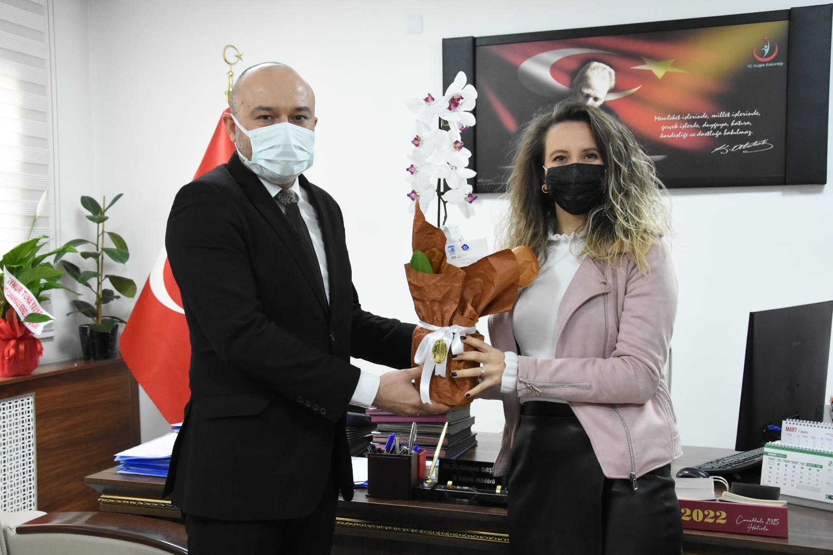 14 Mart Tıp Bayramı nedeni ile hastane başhekimlerine ve İl Sağlık Müdürü Vekiline çiçek takdiminde bulunuldu.