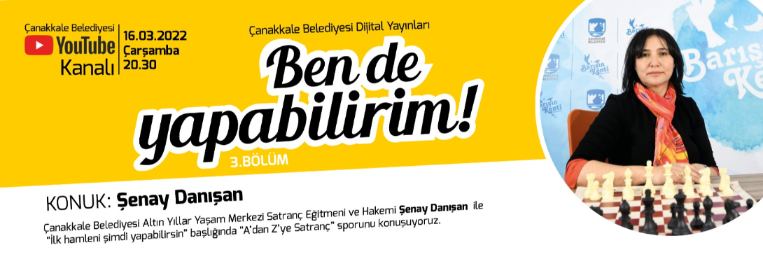 Satranç eğitmeni ve hakemi Şenay Danışan, Çanakkale Belediyesi YouTube Kanalında yayınlanan “Ben de Yapabilirim” programına konuk oluyor.