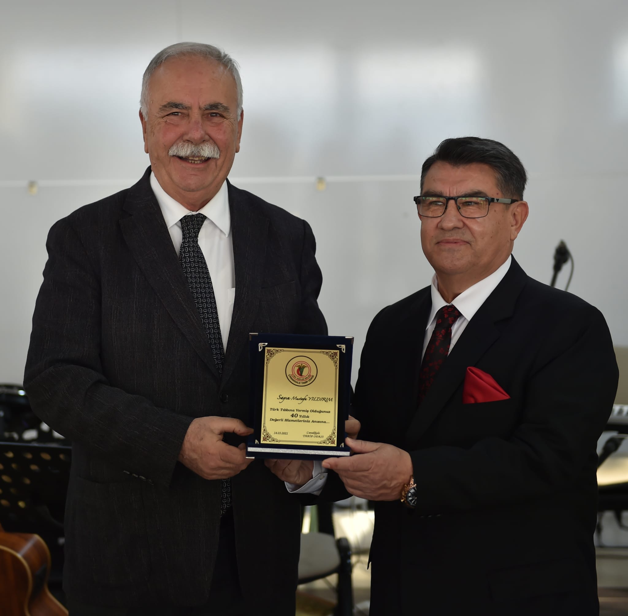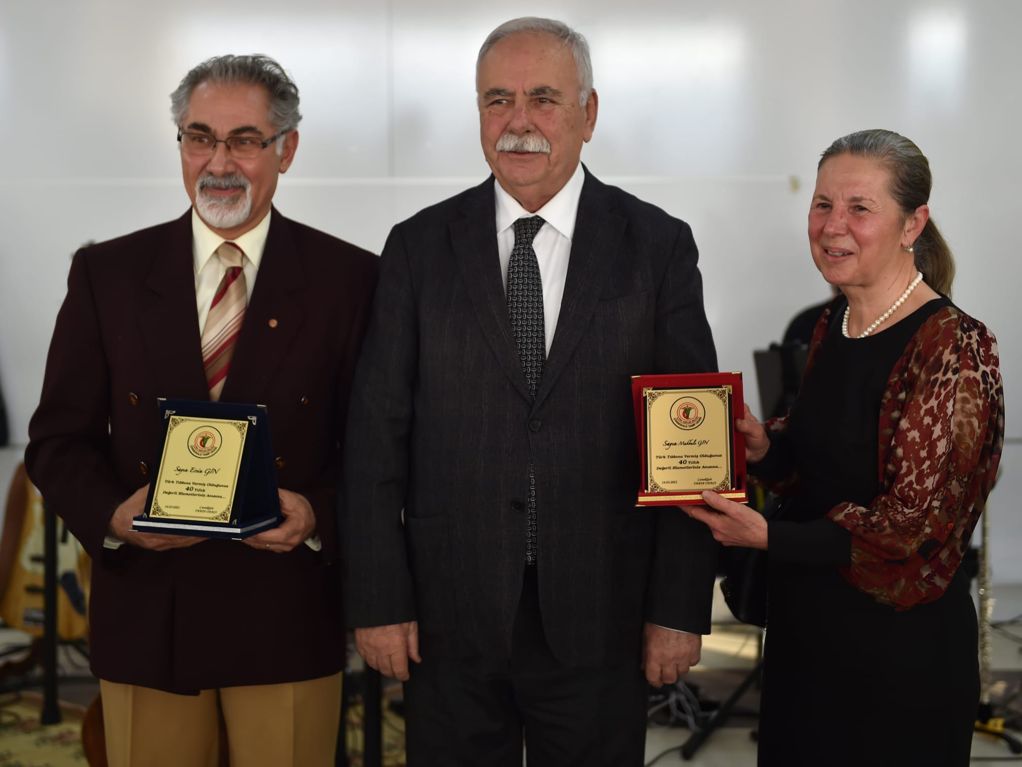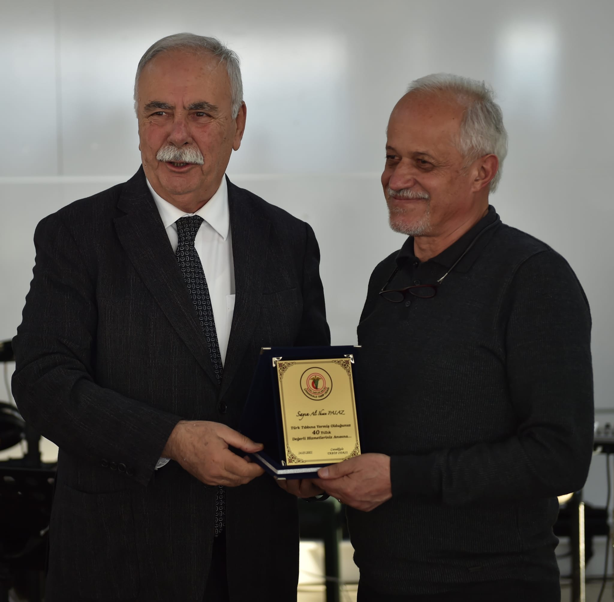 Etkinlik, meslekte belirli bir yılını dolduran doktorlara plaket takdim edilmesi ile devam etti. Başkan Gökhan da meslekte 40 yılını dolduran Dr. Ersin Gin, Dr. Makbule Gin, Dr. Ali İhsan Palas ve Dr. Mustafa Yıldırım'a plaketlerini takdim etti.